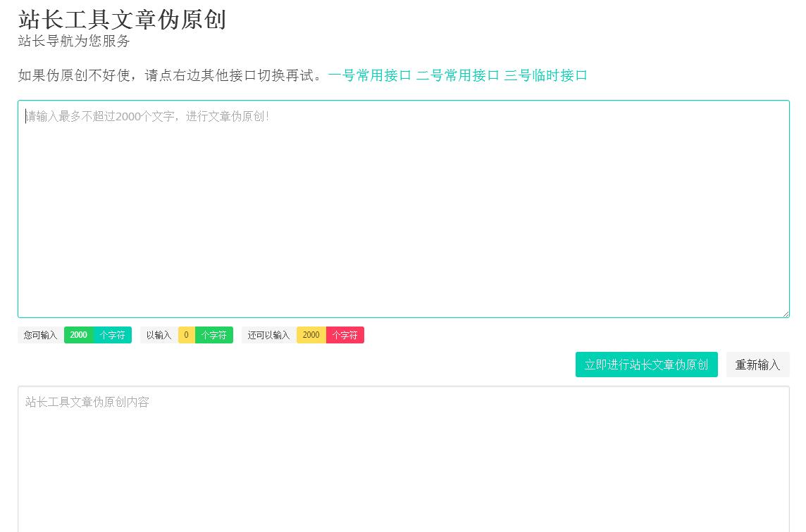 | 網(wǎng)站簡介: 站長工具文章偽原創(chuàng)是您寫作文章的輔助工具,具體還要看情況加上人工檢查組織文章語言來達(dá)到最佳原創(chuàng)效果。 |