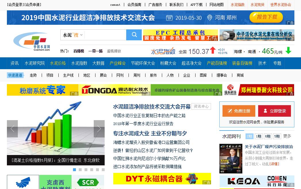 | 網(wǎng)站簡介: 中國水泥網(wǎng)作為水泥行業(yè)門戶網(wǎng)站,是經(jīng)原國家建材局正式授權(quán)的官方網(wǎng)站,主要向大家提供水泥行業(yè)市場分析、水泥行情、水泥標(biāo)準(zhǔn)、水泥行情報(bào)道、水泥價(jià)格、水泥行業(yè)相關(guān)公司、新型水泥技術(shù)等豐富內(nèi)容信息。 水泥行業(yè)全面的信息資訊平臺。 |