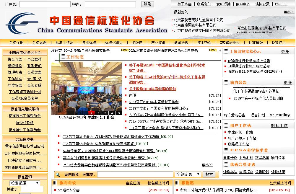 中國通信標(biāo)準(zhǔn)化協(xié)會(huì) (英文譯名為:China Communications Standards Association,縮寫為:CCSA)于2002年12月18日在北京正式成立。協(xié)會(huì)是經(jīng)業(yè)務(wù)主管部門批準(zhǔn),國家社團(tuán)登記管理機(jī)關(guān)登記,由國內(nèi)從事信息通信技術(shù)領(lǐng)域標(biāo)準(zhǔn)化的科研、技術(shù)開發(fā)、設(shè)計(jì)、產(chǎn)品制造、運(yùn)營等企、事業(yè)單位及高等院校、社會(huì)團(tuán)體自愿組成的行業(yè)性、全國性、開放性、非營利性社會(huì)組織。本協(xié)會(huì)宗旨:按照公開、公平、公正和協(xié)商一致原則,建立以企業(yè)為主體、市場為導(dǎo)向,產(chǎn)、學(xué)、研相結(jié)合的工作體系,組織開展信息通信標(biāo)準(zhǔn)化活動(dòng),為國家信息化和信息產(chǎn)業(yè)發(fā)展做出貢獻(xiàn)。協(xié)會(huì)的主要任務(wù)是:組織相關(guān)企事業(yè)單位開展信息通信標(biāo)準(zhǔn)化研究活動(dòng),通過公平、公正、公開地進(jìn)行標(biāo)準(zhǔn)技術(shù)討論達(dá)成協(xié)調(diào)一致,形成高技術(shù)、高水平、高質(zhì)量的標(biāo)準(zhǔn),并推動(dòng)標(biāo)準(zhǔn)的產(chǎn)業(yè)化實(shí)施,同時(shí)組織會(huì)員參與國際以及區(qū)域性標(biāo)準(zhǔn)組織的標(biāo)準(zhǔn)化活動(dòng)。協(xié)會(huì)采用單位會(huì)員制。作為開放的標(biāo)準(zhǔn)化組織,協(xié)會(huì)面向全社會(huì)開放會(huì)員申請(qǐng),廣泛吸收科研、技術(shù)開發(fā)、設(shè)計(jì)單位、產(chǎn)品制造企業(yè)、通信運(yùn)營企業(yè)、高等院校、社團(tuán)組織等參加。針對(duì)日益增長的垂直行業(yè)應(yīng)用需求,協(xié)會(huì)歡迎更多行業(yè)的企事業(yè)單位等加入?yún)f(xié)會(huì)并參與相關(guān)標(biāo)準(zhǔn)制定工作,共同推動(dòng)各行業(yè)應(yīng)用所需的標(biāo)準(zhǔn)化工作。 協(xié)會(huì)主要業(yè)務(wù)范圍是:(一)宣傳國家標(biāo)準(zhǔn)化法律、法規(guī)和方針政策,向主管部門反映會(huì)員單位對(duì)信息通信標(biāo)準(zhǔn)化工作的意見和要求,促進(jìn)主管部門與會(huì)員之間的交流與溝通;(二)開展信息通信標(biāo)準(zhǔn)體系研究和技術(shù)調(diào)查,提出制、修訂信息通信標(biāo)準(zhǔn)項(xiàng)目建議;組織會(huì)員開展標(biāo)準(zhǔn)草案的起草、征求意見、協(xié)調(diào)、審查、標(biāo)準(zhǔn)符合性試驗(yàn)和互連互通試驗(yàn)等標(biāo)準(zhǔn)研究活動(dòng);(三)組織開展信息通信標(biāo)準(zhǔn)的宣講、咨詢、服務(wù)及培訓(xùn),推動(dòng)標(biāo)準(zhǔn)的實(shí)施;(四)組織國內(nèi)外信息通信技術(shù)與標(biāo)準(zhǔn)化的交流合作,積極參與國際標(biāo)準(zhǔn)化組織的活動(dòng)和國際標(biāo)準(zhǔn)的制定;搜集、整理國內(nèi)外信息通信標(biāo)準(zhǔn)相關(guān)信息和資料,支撐信息通信標(biāo)準(zhǔn)研究活動(dòng);(五)承擔(dān)主管部門、會(huì)員單位或其他社會(huì)團(tuán)體委托的與信息通信標(biāo)準(zhǔn)化有關(guān)的工作。