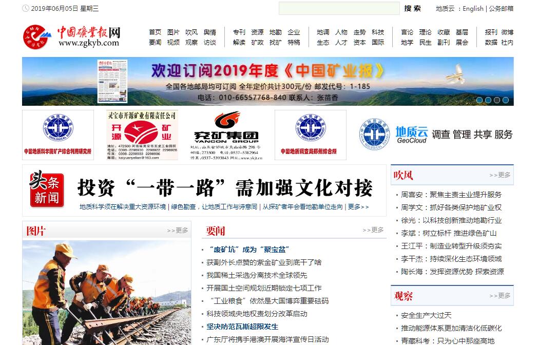 中國礦業(yè)報社官方網(wǎng)站。中國礦業(yè)報由國土資源部主管,中國礦業(yè)聯(lián)合會主辦,是全面報道地質找礦、礦業(yè)開發(fā)與國土資源管理等的中央級產(chǎn)業(yè)經(jīng)濟大報?!吨袊V業(yè)報》是國家級行業(yè)報。從1994年創(chuàng)刊至今,在這二十幾年的風風雨雨中致力于服務全行業(yè),力爭成為礦業(yè)代言人和喉舌的產(chǎn)業(yè)經(jīng)濟大報?!吨袊V業(yè)報》充分發(fā)揮新聞媒體的輿論先導作用,為建設和諧礦業(yè)營造良好的輿論氛圍,進而為實現(xiàn)上述目標提供可靠的資訊保障,促進礦業(yè)的持續(xù)、穩(wěn)定、健康發(fā)展。同時,抓住礦業(yè)發(fā)展的難得機遇,利用自身的比較優(yōu)勢和差異化競爭優(yōu)勢,進一步提升報紙質量,打造報紙的核心競爭力,樹立品牌形象,使《中國礦業(yè)報》真正成為礦業(yè)領域不可或缺的主流媒體,創(chuàng)造更佳的社會效益和經(jīng)濟效益?!吨袊V業(yè)報》堅持“為廣大的礦業(yè)職工服務,為礦業(yè)企事業(yè)單位服務,為有關政府部門決策服務”的辦報方向;堅持“用社會的眼光看礦業(yè),用礦業(yè)的眼光看社會;一辦報,二辦事”的辦報理念。同時,按照“三貼近”的要求,把礦業(yè)基層單位作為報紙的主要報道方向,努力把《中國礦業(yè)報》辦成廣大讀者喜聞樂見的報紙。《中國礦業(yè)報》現(xiàn)為每周出版四期(周二、三、五、六),每期8個版,每周32個版。