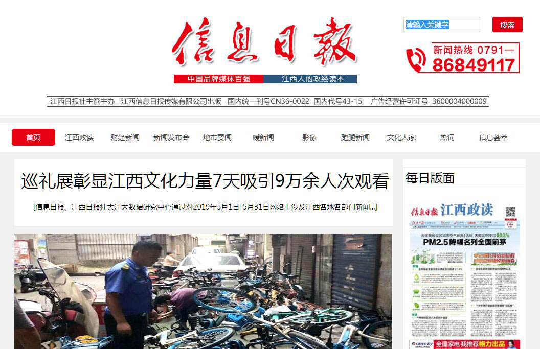 | 網(wǎng)站簡介: 《信息日報》是江西日報報業(yè)集團下屬子報,創(chuàng)辦于1984年10月1日,是全國第一張以深度經(jīng)濟信息、百姓生活資訊為主的綜合信息類日報,開創(chuàng)了我國信息類報刊之先河。 |