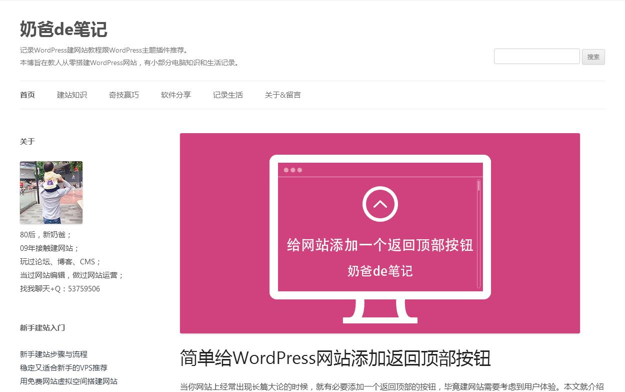 奶爸de筆記主要記錄WordPress建網(wǎng)站教程跟WordPress主題插件推薦。奶爸de筆記記錄的內(nèi)容有:Wordpress教程、VPS教程、寶塔面板教程、零基礎(chǔ)搭建網(wǎng)站教程、奇技贏巧、軟件分享、帶娃經(jīng)驗(yàn)、奶爸日記等內(nèi)容。