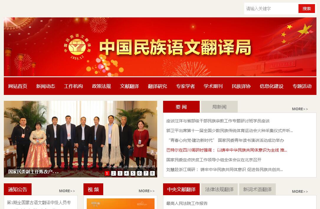 中國民族語文翻譯中心(局)隸屬于國家民族事務(wù)委員會(huì),于1955年12月12日經(jīng)周恩來總理批準(zhǔn)成立,是新中國誕生后在首都北京創(chuàng)建的擔(dān)負(fù)黨和國家重要翻譯任務(wù)的民族語文翻譯機(jī)構(gòu)。中國民族語文翻譯中心(局)的主要職責(zé)是:承擔(dān)黨和國家重要文件文獻(xiàn)、法律法規(guī)和重大會(huì)議的民族語文翻譯和同聲傳譯工作,為黨和國家及社會(huì)組織提供民族語文翻譯服務(wù);開展民族語文基礎(chǔ)理論、翻譯理論和有關(guān)特殊問題的研究,提出有關(guān)意見建議;開展民族語文新詞術(shù)語規(guī)范化、標(biāo)準(zhǔn)化研究,提出民族語文新詞術(shù)語標(biāo)準(zhǔn)建議;開展民族語文信息化研究,參與或承辦民族語文信息化相關(guān)工作;聯(lián)系民族語文翻譯工作機(jī)構(gòu)和民族語文翻譯專家,承擔(dān)民族語文翻譯有關(guān)業(yè)務(wù)交流合作和業(yè)務(wù)培訓(xùn)工作;承辦國家民委交辦的其他事項(xiàng)。中國民族語文翻譯中心(局)內(nèi)設(shè)辦公室、業(yè)務(wù)處、蒙古語文室、藏語文室、維吾爾語文室、哈薩克語文室、朝鮮語文室、彝語文室、壯語文室、研究室、信息處、人事處、紀(jì)檢監(jiān)察處、財(cái)務(wù)處、離退休職工處、總務(wù)處等16個(gè)部門。主辦有國家級(jí)民族語文翻譯學(xué)術(shù)期刊《民族翻譯》和中國民族翻譯網(wǎng)。中國民族語文翻譯中心(局)現(xiàn)有在職職工近200人,專業(yè)技術(shù)人員約占70%,少數(shù)民族約占80%,形成一支政治素質(zhì)強(qiáng)、業(yè)務(wù)水平高的多民族多語種國家級(jí)翻譯隊(duì)伍。截至2018年7月31日,共有60余人具有高級(jí)翻譯專業(yè)技術(shù)職稱,9人先后享受國務(wù)院政府特殊津貼,4人獲國家民委突出貢獻(xiàn)專家獎(jiǎng),14人入選國家民委領(lǐng)軍人才和中青年英才項(xiàng)目。建局以來來,中國民族語文翻譯中心(局)圓滿完成所承擔(dān)的歷屆歷次全國黨代會(huì)、人代會(huì)、政協(xié)會(huì)議的文件翻譯和同聲傳譯任務(wù);用蒙古、藏、維吾爾、哈薩克、朝鮮、彝、壯7種少數(shù)民族語言文字翻譯一大批經(jīng)典著作、文件文獻(xiàn)、法律法規(guī)、詞典書刊等。主要有:《資本論》《馬克思恩格斯文集》《毛澤東選集》《鄧小平文選》《江澤民文選》《習(xí)近平談治國理政》,以及《中國共產(chǎn)黨章程(2017)》《中華人民共和國法律匯編》《中華人民共和國國民經(jīng)濟(jì)和社會(huì)發(fā)展第十三個(gè)五年規(guī)劃綱要》《中國共產(chǎn)黨第十九次全國代表大會(huì)文件匯編》《國務(wù)院宗教事務(wù)條例》《西藏發(fā)展道路的歷史選擇》等。中國民族語文翻譯中心(局)作為唯一的國家級(jí)民族語文翻譯機(jī)構(gòu),為在少數(shù)民族和民族地區(qū)傳播馬克思列寧主義、毛澤東思想、鄧小平理論、“三個(gè)代表”重要思想、科學(xué)發(fā)展觀和習(xí)近平新時(shí)代中國特色社會(huì)主義思想,為宣傳黨和國家的路線、方針、政策,為維護(hù)民族團(tuán)結(jié)、社會(huì)穩(wěn)定和國家統(tǒng)一,促進(jìn)少數(shù)民族和民族地區(qū)經(jīng)濟(jì)社會(huì)發(fā)展,繁榮和發(fā)展少數(shù)民族文化,推動(dòng)民族語文翻譯理論研究和學(xué)術(shù)交流都做出了重要貢獻(xiàn)。中國民族語文翻譯中心(局)多次受到黨和國家領(lǐng)導(dǎo)人的親切接見,先后獲得“全國民族團(tuán)結(jié)進(jìn)步模范集體”、“全國保密工作先進(jìn)集體”、“中央國家機(jī)關(guān)文明單位”等榮譽(yù)稱號(hào)。