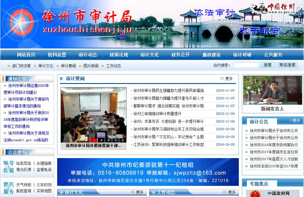 1983年8月,徐州市人民政府根據(jù)《中華人民共和國憲法》中有關(guān)國家實行審計監(jiān)督的規(guī)定成立徐州市審計局。內(nèi)設(shè)機構(gòu)有辦公室、人事處、監(jiān)察處、法規(guī)處、計算機審計處、財政金融審計處、企業(yè)審計處、行政事業(yè)審計處、社會保障審計處、固定資產(chǎn)投資審計處、外資運用審計處、農(nóng)業(yè)與資源環(huán)保審計處、內(nèi)部審計與經(jīng)濟責任審計處、城市土地經(jīng)營審計處等14個處室。按照《中華人民共和國審計法》的規(guī)定,徐州市審計局是徐州市依法獨立行使審計監(jiān)督權(quán)的審計機關(guān),在市長和省審計廳領(lǐng)導下,負責徐州市的審計工作,主要履行以下職責:一、擬訂徐州市審計政策;起草徐州市審計方面的地方性法規(guī)、規(guī)章草案;制訂徐州市審計規(guī)章制度并監(jiān)督執(zhí)行情況。二、向市政府報告和向市政府有關(guān)部門通報審計情況;提出制訂和完善徐州市有關(guān)政策法規(guī)、措施的建議。三、依據(jù)《中華人民共和國審計法》的規(guī)定,直接進行下列審計:(一)本級預算執(zhí)行情況和其他財政收支。(二)市政府各部門、市屬事業(yè)單位及其下屬單位的財務(wù)收支。(三)縣、區(qū)政府預算的執(zhí)行情況和決算。(四)徐州市國有金融機構(gòu)的資產(chǎn)、負債和損益狀況。(五)徐州市國有重點大中型企業(yè)、與國計民生有重大關(guān)系的國有企業(yè)、接受財政補貼較多或者虧損數(shù)額較大的國有企業(yè)、國有資產(chǎn)占控股地位或者主導地位的企業(yè)、市政府指定的其他國有企業(yè)的資產(chǎn)、負債、損益狀況。(六)國家投資建設(shè)項目預算的執(zhí)行情況和決算。(七)市政府各部門管理的和受市政府委托由社會團體管理的社會保障基金、環(huán)境保護資金、社會捐贈資金及其他有關(guān)基金、資金的財務(wù)收支。(八)根據(jù)審計署授權(quán),審計國際組織和外國政府援助、貸款項目的財務(wù)收支。(九)其他法律、法規(guī)規(guī)定應(yīng)由市審計局進行的審計。四、向市政府提出徐州市預算執(zhí)行情況的審計結(jié)果報告;受市政府委托向市人大常委會提出徐州市預算執(zhí)行情況和其他財政收支審計工作報告。五、組織實施對貫徹執(zhí)行徐州市財經(jīng)政策和措施情況的行業(yè)審計、專項審計和審計調(diào)查。六、組織實施對徐州市區(qū)縣級以下領(lǐng)導干部和國有企業(yè)及國有控股企業(yè)領(lǐng)導人員的任期經(jīng)濟責任審計。七、依法受理被審計單位對審計機關(guān)審計決定的復議申請。八、組織領(lǐng)導、協(xié)調(diào)監(jiān)督縣區(qū)審計機關(guān)的業(yè)務(wù);與縣、區(qū)政府共同領(lǐng)導縣、區(qū)審計機關(guān),協(xié)同辦理縣、區(qū)審計機關(guān)正、副職負責人的任免事項。九、組織實施對內(nèi)部審計的指導和監(jiān)督;組織實施對社會審計組織審計業(yè)務(wù)質(zhì)量的監(jiān)督檢查。十、根據(jù)審計署授權(quán),依法審計中央在徐單位的財務(wù)收支情況。十一、承辦市政府交辦的其他事項。在實施審計監(jiān)督過程中,為了提高審計工作效率與質(zhì)量,徐州市審計局正在積極探索和逐步采用系統(tǒng)基礎(chǔ)審計和抽樣審計等現(xiàn)代審計方法以及電子計算機現(xiàn)代審計技術(shù)手段。徐州市審計局在維護徐州經(jīng)濟秩序,促進廉政建設(shè),保障徐州經(jīng)濟建設(shè)等方面發(fā)揮了重要作用。