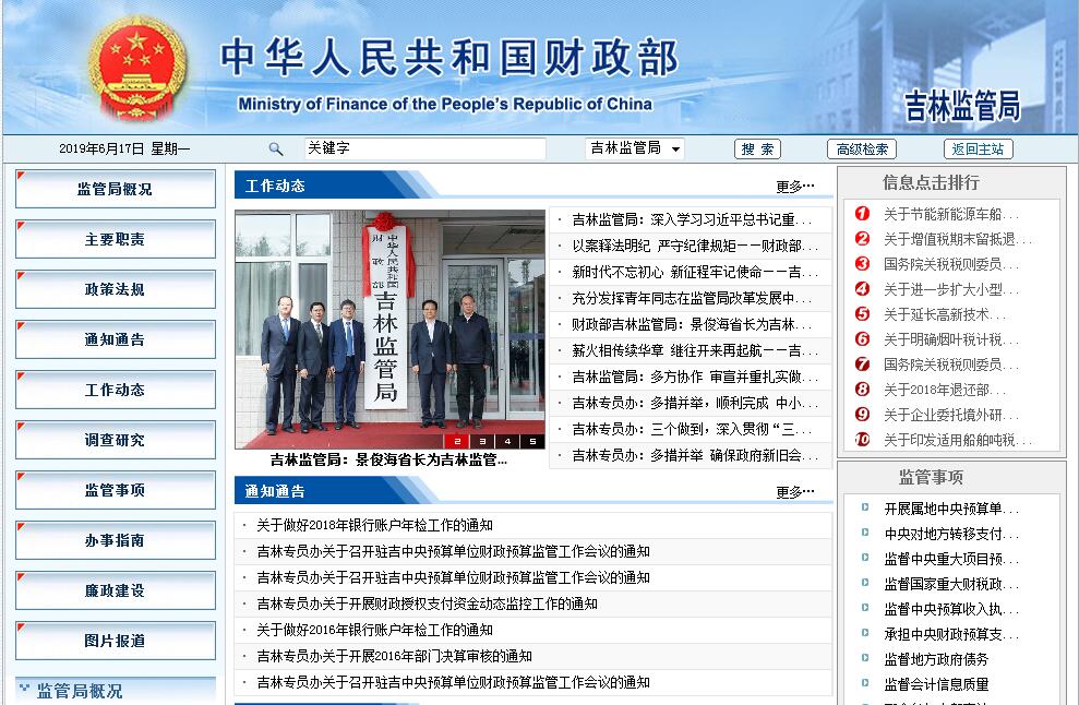 財(cái)政部吉林監(jiān)管局主要職責(zé):一、貫徹落實(shí)黨中央關(guān)于財(cái)經(jīng)工作的方針政策和決策部署,在履行職責(zé)過程中堅(jiān)持和加強(qiáng)黨對財(cái)政工作的集中統(tǒng)一領(lǐng)導(dǎo),履行全面從嚴(yán)治黨責(zé)任。二、調(diào)查研究屬地經(jīng)濟(jì)發(fā)展形勢和財(cái)政運(yùn)行狀況。根據(jù)財(cái)政部授權(quán)管理屬地中央各項(xiàng)財(cái)政收支,承擔(dān)財(cái)稅法規(guī)和政策在屬地的執(zhí)行情況、預(yù)算管理有關(guān)監(jiān)督工作,向財(cái)政部提出相關(guān)政策建議。三、對屬地中央預(yù)算單位預(yù)決算編制情況進(jìn)行評估并向財(cái)政部提出審核意見。根據(jù)財(cái)政部授權(quán)對屬地中央預(yù)算單位預(yù)算執(zhí)行情況進(jìn)行監(jiān)控及分析預(yù)測。組織對中央重大財(cái)稅政策和專項(xiàng)轉(zhuǎn)移支付在屬地的執(zhí)行情況進(jìn)行績效評價,提出相關(guān)改進(jìn)措施建議并跟蹤落實(shí)。四、根據(jù)財(cái)政部授權(quán)對地方政府債務(wù)實(shí)施監(jiān)控,嚴(yán)控法定限額內(nèi)債務(wù)風(fēng)險(xiǎn),防控隱性債務(wù)風(fēng)險(xiǎn),發(fā)現(xiàn)風(fēng)險(xiǎn)隱患及時提出改進(jìn)和處理意見并向財(cái)政部、地方人民政府反映報(bào)告。五、按規(guī)定權(quán)限審核審批屬地中央行政事業(yè)單位國有資產(chǎn)配置、處置等事項(xiàng)。根據(jù)財(cái)政部授權(quán)監(jiān)管屬地中央金融企業(yè)執(zhí)行財(cái)務(wù)制度等情況。六、根據(jù)財(cái)政部統(tǒng)一部署,承擔(dān)有關(guān)會計(jì)信息質(zhì)量、注冊會計(jì)師行業(yè)執(zhí)業(yè)質(zhì)量、資產(chǎn)評估行業(yè)執(zhí)業(yè)質(zhì)量監(jiān)督檢查工作,參與跨境會計(jì)監(jiān)管合作。七、完成財(cái)政部交辦的其他任務(wù)。