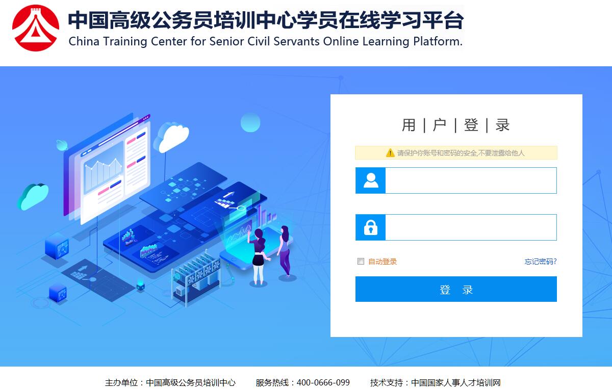 | 網(wǎng)站名稱: | 中國高級(jí)公務(wù)員培訓(xùn)中心學(xué)員在線學(xué)習(xí)平臺(tái) | ||