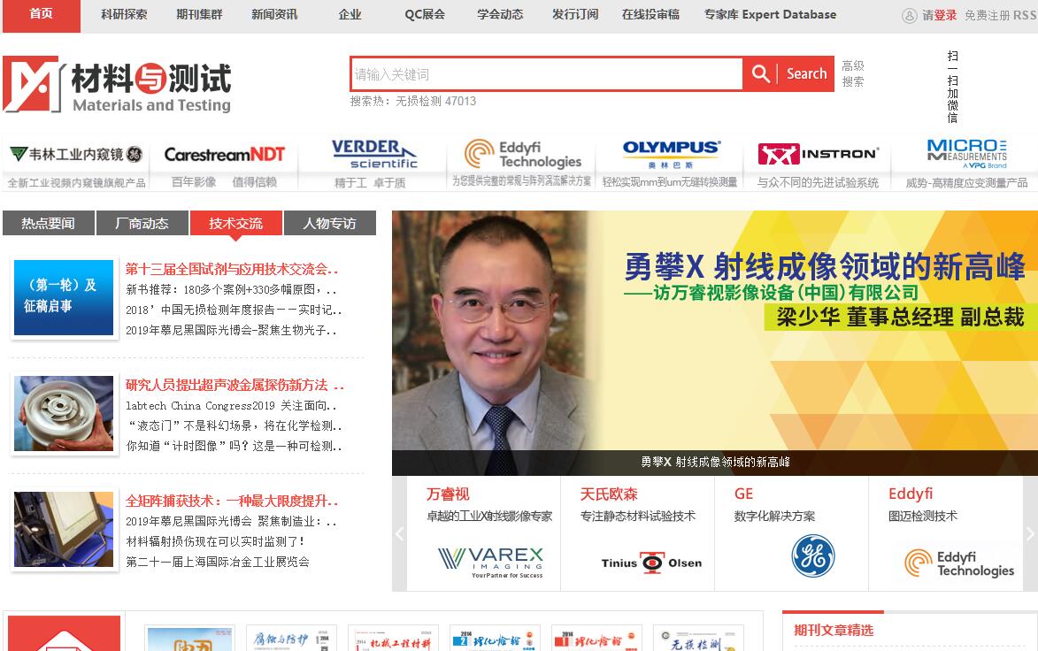 “材料與測(cè)試網(wǎng)”(www.mat-test.com)自從2006年上線運(yùn)行以來就是上海材料研究所期刊雜志社的重要組成部分,長久以來一直作為論文投審稿、信息發(fā)布、企業(yè)品牌宣傳等功能的窗口,是公司不可或缺的重要載體之一。2015年經(jīng)過全新升級(jí)改版的“材料與測(cè)試網(wǎng)”以信息化和期刊數(shù)字化發(fā)展為出發(fā)點(diǎn),以資訊交流平臺(tái)的形式,全面報(bào)道和展示包括新材料、無損檢測(cè)、理化檢測(cè)、防腐蝕等領(lǐng)域內(nèi)的科技文獻(xiàn)、新聞資訊、產(chǎn)品等等內(nèi)容。網(wǎng)站涵蓋有行業(yè)資訊交流、期刊集群管理、論文數(shù)據(jù)庫管理、網(wǎng)絡(luò)期刊、在線展覽、企業(yè)產(chǎn)品展示等功能?!安牧吓c測(cè)試網(wǎng)”以上海材料研究所科技期刊雜志社為技術(shù)依托,輔以各行業(yè)學(xué)會(huì)及編委專家為后盾,秉持傳統(tǒng)科技期刊的內(nèi)容原創(chuàng)和品質(zhì)權(quán)威的獨(dú)特優(yōu)勢(shì),致力于為材料研發(fā)及檢測(cè)行業(yè)的從業(yè)人員提供專業(yè)的技術(shù)服務(wù)和信息服務(wù)。上海材料研究所期刊雜志社除了運(yùn)營“材料與測(cè)試網(wǎng)”與編輯出版六本專業(yè)的科技期刊外,還組織主辦“Q.C.China中國國際質(zhì)量控制與測(cè)試工業(yè)展覽會(huì)”;每年聯(lián)合所屬行業(yè)學(xué)會(huì),組織多場(chǎng)行業(yè)學(xué)術(shù)交流活動(dòng);以及針對(duì)無損檢測(cè)行業(yè),每年編輯發(fā)行《中國無損檢測(cè)年度報(bào)告》。