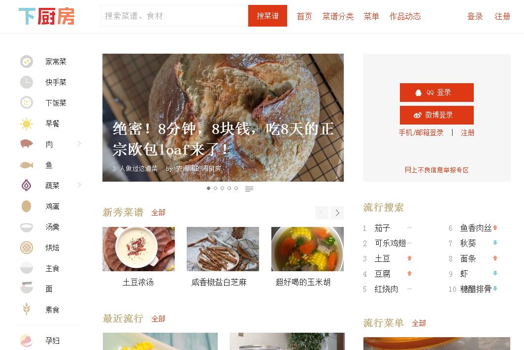 下廚房美食菜譜網(wǎng)倡導(dǎo)在家烹飪、健康的生活方式,提供有版權(quán)的實(shí)用菜譜做法與飲食知識(shí),提供廚師和美食愛(ài)好者一個(gè)記錄、分享的平臺(tái)。