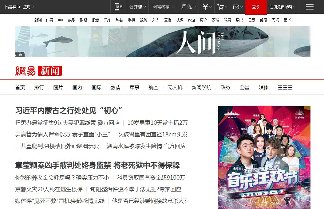 | 網(wǎng)站簡介: 網(wǎng)易新聞,新聞中心,包含有時政新聞,國內(nèi)新聞,國際新聞,社會新聞,時事評論,新聞圖片,新聞專題,新聞?wù)搲?軍事,歷史,的專業(yè)時事報道門戶網(wǎng)站。 |