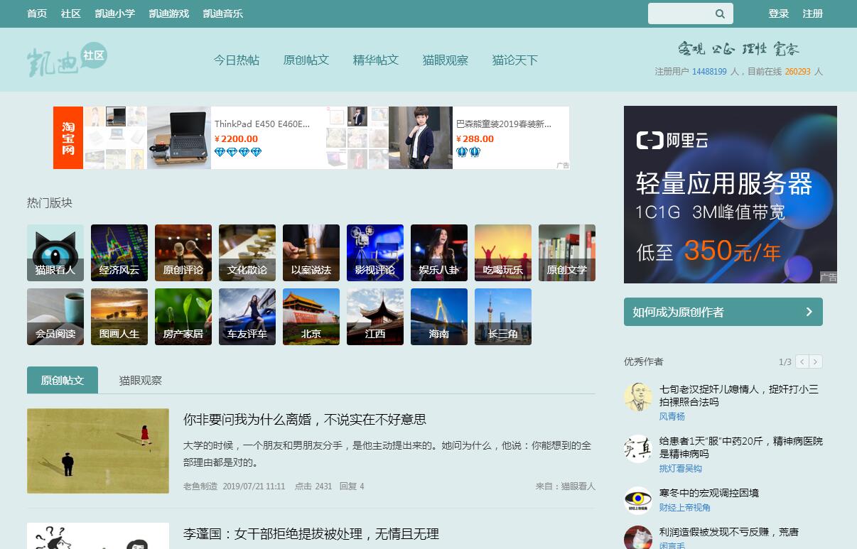 凱迪網(wǎng)絡(luò)(www.kdnet.net)于1999年創(chuàng)立、2000 年6 月1日在海南省??谑姓缴暇€,發(fā)端之初使用www.cat898.com域名運行至2012年,之后使用現(xiàn)域名至今。凱迪網(wǎng)絡(luò)伴隨著中文互聯(lián)網(wǎng)與中國網(wǎng)民共同成長,從我國第一代網(wǎng)絡(luò)論壇發(fā)軔,以“客觀、公正、理性、寬容”為辦網(wǎng)宗旨,聚集近1500萬中外注冊用戶,其中多半為中心城市中高端用戶,集結(jié)著一大批市場活躍引領(lǐng)群體。凱迪網(wǎng)絡(luò)已發(fā)展成為漢語使用區(qū)最具代表性的互聯(lián)網(wǎng)UGC (用戶生成內(nèi)容)平臺之一,其中“貓眼看人”連續(xù)多年在全國所有社區(qū)論壇版塊中排名第一;經(jīng)濟風(fēng)云與文化散論等已成眾多讀者喜愛的品牌欄目。目前,凱迪網(wǎng)絡(luò)擁有60個內(nèi)容版塊(頻道、論壇、重點欄目),流量集中在時事政治、財經(jīng)、法制、生活服務(wù)、文藝原創(chuàng)等區(qū)域。即將開通的《度假生活》與《美食家》將為凱迪網(wǎng)絡(luò)的線下發(fā)展鳴鑼開道。20年來,凱迪網(wǎng)絡(luò)的關(guān)注視角從未在國際、國內(nèi)任何重大事件中缺位,通常都處于信息最前沿。凱迪網(wǎng)絡(luò)堅定捍衛(wèi)黨的十一屆三中全會以來中國改革開放成果。在重大的輿論監(jiān)督場合,凱迪網(wǎng)絡(luò)始終堅持 “建設(shè)者”的立場,在信息最前沿成為最具代表性的民意表達平臺。本站擁有網(wǎng)絡(luò)虛擬世界的“世界最高樓”記錄——單個主帖的點擊瀏覽量超過4億,跟帖蓋樓超過120萬層,成為互聯(lián)網(wǎng)發(fā)展史上罕見奇跡。這里每天超過百萬用戶在這個超人氣社區(qū)或是暢所欲言、或是深入圍觀,每一種理性聲音都能在這里找到共鳴,每一種生活經(jīng)驗都有觀眾分享,凱迪網(wǎng)絡(luò)作為中文論壇“深水區(qū)”名副其實。除了傳統(tǒng)BBS模式的公共議事型的社區(qū)廣場,凱迪網(wǎng)絡(luò)在自媒體涌動的背景下推出更便捷的信息精致化服務(wù),以解決用戶在移動互聯(lián)網(wǎng)時代被碎片化信息干擾、因網(wǎng)絡(luò)喧囂而迷茫的困境,充分滿足群體間高品質(zhì)溝通和價值信息獲取。在優(yōu)化及提升產(chǎn)品的社交溝通能力與用戶溝通方式的同時,為以內(nèi)容傳播驅(qū)動的媒體業(yè)務(wù)提供互動營銷平臺。作為一座超人氣互動廣場,為滿足廣大信息消費者同時存在的生活需求,凱迪網(wǎng)絡(luò)適時推出諸如《度假生活》《美食家》《健康社會》《車友評車》《閱讀與思考》(中間地帶)等頻道(欄目)。它們以鮮活的內(nèi)容、獨特的視角、犀利的評價成為讀者線下的優(yōu)質(zhì)生活指南?!坝^乎天文以察時變,觀乎人文以化成天下”,在互聯(lián)網(wǎng)發(fā)展進入新時代的今天,凱迪網(wǎng)絡(luò)與時俱進,明確實施全新戰(zhàn)略方向:專注文化、財經(jīng)、生活服務(wù)和社會領(lǐng)域,探索知識經(jīng)濟及信息產(chǎn)品的多樣性,為互聯(lián)網(wǎng)新生代提供價值信息,以優(yōu)質(zhì)信息傳承人文,以積極向上、客觀理性立場傳播社會價值。