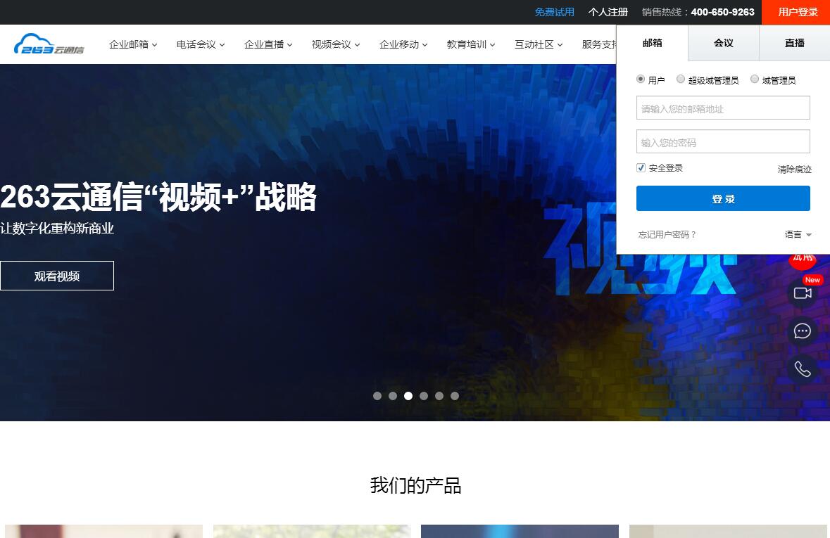 北京二六三企業(yè)通信有限公司(簡(jiǎn)稱:263企業(yè)通信),20年深耕企業(yè)互聯(lián)網(wǎng)通信服務(wù)領(lǐng)域,為國(guó)內(nèi)外各類客戶提供融合創(chuàng)新、專業(yè)高效的溝通、協(xié)作、分享、傳播服務(wù)。近年來,公司憑借優(yōu)秀的營(yíng)收能力,成為領(lǐng)先的企業(yè)互聯(lián)網(wǎng)通信專家。目前,公司在產(chǎn)品、研發(fā)、運(yùn)營(yíng)上形成了企業(yè)郵箱、企業(yè)網(wǎng)盤、電話會(huì)議、視頻會(huì)議、企業(yè)直播和企業(yè)移動(dòng)全線的企業(yè)通信互聯(lián)網(wǎng)產(chǎn)品能力,并將這些產(chǎn)品深度融合于“連接價(jià)值、賦能行業(yè)”的理念中。2017年底,公司開放了“郵箱、會(huì)議、直播”全線產(chǎn)品,以263教育為基點(diǎn),為教育行業(yè)提供軟硬件結(jié)合的一站式在線教育服務(wù)解決方案。263教育涵蓋雙師課堂、直播網(wǎng)校(K12)、大班課堂、小班課堂四種針對(duì)細(xì)分場(chǎng)景在內(nèi)的教育解決方案, 致力于利用互聯(lián)網(wǎng)技術(shù)為教培機(jī)構(gòu)、省地市教育局和大中小學(xué)校,通過科技助力教育來推動(dòng)整個(gè)產(chǎn)業(yè)的繁榮和發(fā)展。目前,263企業(yè)通信正在為數(shù)十萬家企業(yè)客戶通過極優(yōu)的成本獲得高品質(zhì)的企業(yè)通信協(xié)作解決方案,幫助企業(yè)客戶在企業(yè)互聯(lián)時(shí)代的云端生態(tài)圈中實(shí)現(xiàn)智慧連接,共贏先機(jī)。