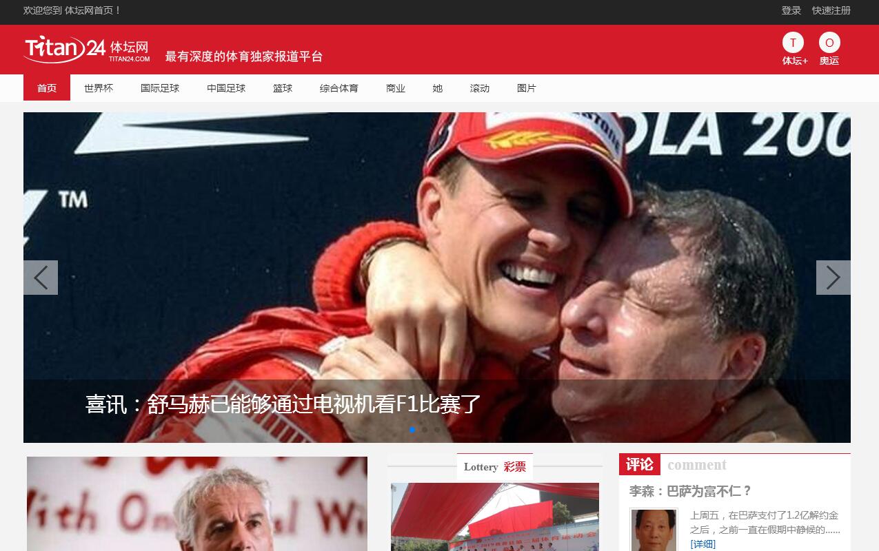 體壇網(wǎng)(titan24.com)是體壇傳媒集團(tuán)旗下新成立的的體育網(wǎng)站,包括體育新聞、豪門(mén)官網(wǎng)、體壇e版、 體苑沙龍、體育動(dòng)漫、體育游戲、無(wú)線體壇等大板塊,旨在全方位整合集團(tuán)旗下的報(bào)紙、雜志、 電視、3G手機(jī)等新、老媒體資源,打造全中國(guó)、全球華人圈最大的垂直體育門(mén)戶網(wǎng)站。