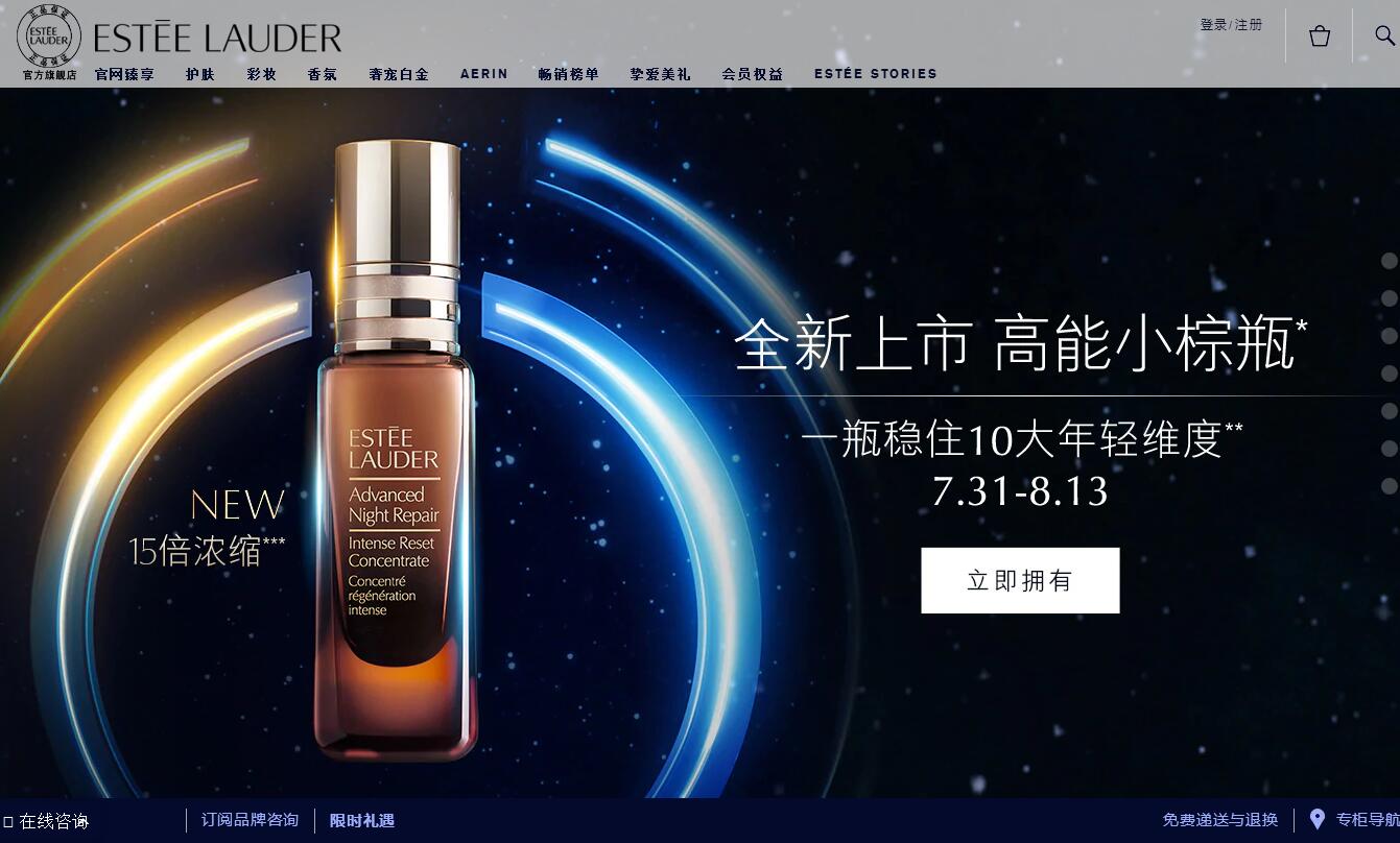 雅詩蘭黛(Estee Lauder)官網(wǎng)商城,100%官方正品保證?!懊恳晃慌越钥擅利悇尤恕?,品牌的至美初衷盡在官網(wǎng)。為您臻選明星護(hù)膚和彩妝產(chǎn)品:小棕瓶修護(hù)家族、紅石榴系列、傾慕彩妝系列。更有官網(wǎng)獨(dú)享精美禮盒套裝,修護(hù)"肌因*",時刻年輕。雅詩蘭黛公司創(chuàng)立于1946年,技術(shù)先進(jìn),不斷創(chuàng)新,憑著其研發(fā)的各類精致優(yōu)雅而又奢華的產(chǎn)品而享譽(yù)全球。歷經(jīng)廣泛的研究以及一貫嚴(yán)格的產(chǎn)品測試,她旗下的所有產(chǎn)品都秉承高水準(zhǔn)的保證。雅詩蘭黛產(chǎn)品在各大高檔購物中心以及專賣店有售點(diǎn)擊這里 查找距離您最近的雅詩蘭黛專柜。