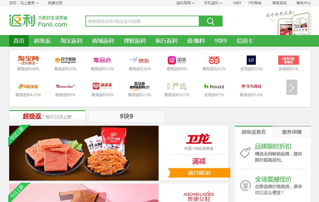 | 網(wǎng)站簡介: 返利(www.fanli.com)成立于2006年,是中國領(lǐng)先的電商導(dǎo)購媒體,擁有用戶1.7億。返利合作伙伴幾乎涵蓋了所有知名電商 ,包括天貓、淘寶、京東、蘇寧易購、蘋果中國官方商城、一號店、亞馬遜、聚美優(yōu)品等400多家電商網(wǎng)站,以及20000多個知名品牌店鋪。當(dāng)用戶點擊返利的鏈接去對應(yīng)的商家網(wǎng)站下單購物,商家會為用戶的訂單支付給返利一筆營銷費用,返利把這筆費用的絕大部分以返利的形式返還給用戶,這就是返利的來源。 |
