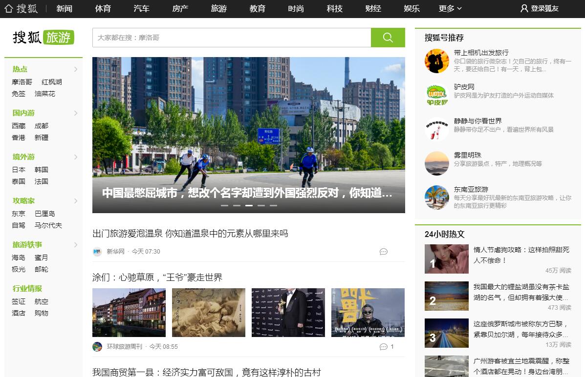 | 網(wǎng)站簡介: 搜狐旅游是搜狐旗下的旅游資訊平臺(tái)。致力為讀者提供多元、實(shí)用、國際化的旅游資訊,相信行走的價(jià)值,推動(dòng)國人在旅途中獲得成長。 |
