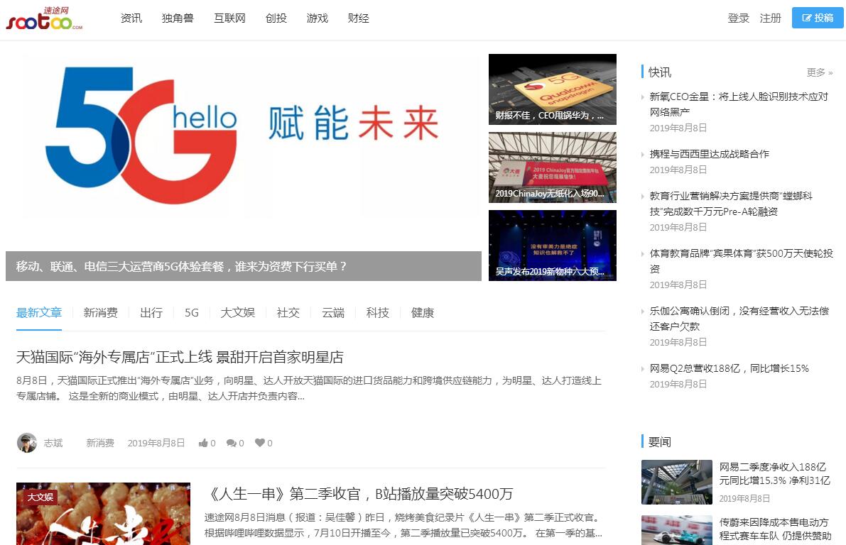| 網(wǎng)站簡(jiǎn)介: 速途網(wǎng)上線于2009年,是北京速途網(wǎng)絡(luò)科技股份有限公司(簡(jiǎn)稱速途網(wǎng)絡(luò))旗下的TMT行業(yè)資訊網(wǎng)站。目前已經(jīng)成為中國(guó)互聯(lián)網(wǎng)+領(lǐng)域發(fā)展的風(fēng)向標(biāo)。速途網(wǎng)使用自主研發(fā)的自組織發(fā)布系統(tǒng),以注冊(cè)用戶自主發(fā)布內(nèi)容、通過(guò)注冊(cè)用戶投票實(shí)現(xiàn)自動(dòng)編輯,并結(jié)合微博、微信等社會(huì)化媒體發(fā)展趨勢(shì),一直專注于中國(guó)移動(dòng)互聯(lián)網(wǎng)、行業(yè)資訊、獨(dú)角獸、創(chuàng)投、游戲、財(cái)經(jīng)等互聯(lián)網(wǎng)發(fā)展應(yīng)用動(dòng)態(tài)的發(fā)布和分享。截至2018年底,速途網(wǎng)覆蓋全球1億讀者,注冊(cè)作者約10萬(wàn)人,活躍專欄作家超過(guò)2000人,專職編輯人員40多人,已經(jīng)累計(jì)發(fā)布超過(guò)10萬(wàn)篇文章。作為國(guó)內(nèi)較早的關(guān)注TMT領(lǐng)域的資訊網(wǎng)站,速途網(wǎng)一直專注于初創(chuàng)公司、獨(dú)角獸、上市公司深度報(bào)道,累計(jì)關(guān)注超過(guò)10萬(wàn)家企業(yè),其中60%通過(guò)報(bào)道,獲得優(yōu)秀的機(jī)構(gòu)投資。在內(nèi)容生產(chǎn)和內(nèi)容運(yùn)營(yíng)上,速途網(wǎng)搭建了行業(yè)內(nèi)首屈一指的團(tuán)隊(duì),形成了強(qiáng)大的行業(yè)競(jìng)爭(zhēng)力。內(nèi)容生產(chǎn)核心團(tuán)隊(duì)均來(lái)自于《北京日?qǐng)?bào)》《21世紀(jì)經(jīng)濟(jì)報(bào)道》《南方都市報(bào)》《IT經(jīng)理世界》《銷售與市場(chǎng)》等老牌傳媒。目前速途網(wǎng)的內(nèi)容采用矩陣式全網(wǎng)傳播方式,有網(wǎng)絡(luò)的地方就有速途網(wǎng)的內(nèi)容覆蓋,真正成為中國(guó)最專業(yè)的互聯(lián)網(wǎng)+信息服務(wù)機(jī)構(gòu)。速途網(wǎng)探營(yíng)、速途網(wǎng)深度評(píng)論等原創(chuàng)欄目深受IT、互聯(lián)網(wǎng)企業(yè)和用戶好評(píng);速途網(wǎng)線下沙龍活動(dòng),已累計(jì)舉辦超過(guò)300場(chǎng),先后有數(shù)萬(wàn)人參與;其中速途研究院每天出品的關(guān)于互聯(lián)網(wǎng)熱點(diǎn)趨勢(shì)的研究報(bào)告被主流媒體廣為轉(zhuǎn)載和引用,成為企業(yè)決策和分析市場(chǎng)的重要數(shù)據(jù)來(lái)源之一。 |