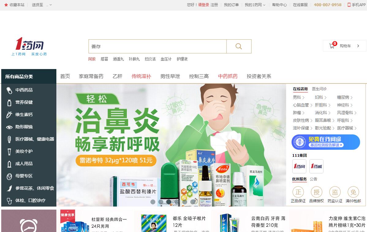 1藥網(wǎng)(原名壹藥網(wǎng))的前身1號藥網(wǎng)成立于2010年7月,隸屬于111集團(tuán),是海量用戶正在使用的醫(yī)藥平臺,也是中國第一批獲得國家食品藥品監(jiān)督管理局頒發(fā)《互聯(lián)網(wǎng)藥品交易許可證》的合法網(wǎng)上藥店,為廣大顧客提供一站式 "醫(yī)+藥"的便捷體驗。1藥網(wǎng)始終致力于用互聯(lián)網(wǎng)的思維方式,切入數(shù)字和移動醫(yī)療健康領(lǐng)域,解決中國老百姓"看病難、買藥貴"的問題,為社會創(chuàng)造更大的價值。依托111集團(tuán)在云平臺解決方案、智能供應(yīng)鏈、大數(shù)據(jù)、醫(yī)療專業(yè)能力構(gòu)建的內(nèi)核優(yōu)勢,1藥網(wǎng)在平臺運營、產(chǎn)品采購、供應(yīng)鏈管理、醫(yī)療服務(wù)、顧客體驗、倉儲配送等各方面構(gòu)筑起了核心競爭力。憑借源頭采藥和網(wǎng)上電商的獨特資源、平臺優(yōu)勢,1藥網(wǎng)竭誠讓利顧客,同樣的藥品質(zhì)量保證,更低廉的銷售價格,吸引了越來越多的患者網(wǎng)上購藥。通過與醫(yī)藥廠商直供合作,1藥網(wǎng)在供應(yīng)鏈管理上減少中間環(huán)節(jié),實現(xiàn)了高效、透明的管理模式,同時為廣大顧客帶來正品保證,安全保障。目前,1藥網(wǎng)已與拜耳、輝瑞、禮來、阿斯利康、同仁堂、東阿阿膠、強生安視優(yōu)、白云山、匯仁藥業(yè)、碧生源、斯利安藥業(yè)等國內(nèi)外數(shù)百家醫(yī)藥廠商建立了長期合作關(guān)系,為顧客提供涵蓋中西藥品、滋補保健、維生素鈣、隱形眼鏡、醫(yī)療器械、藥妝個護(hù)等多個品類的數(shù)十萬種醫(yī)藥健康產(chǎn)品。依托111集團(tuán)倉儲布局, 1藥網(wǎng)為廣大顧客提供更為快捷的配送方式和體驗。目前,111集團(tuán)建立了覆蓋全國范圍的華南、華東、華北、西南運營和倉儲中心,分別位于廣州、昆山、天津、重慶。1藥網(wǎng)擁有一支專業(yè)的藥師團(tuán)隊,為顧客提供一對一在線用藥咨詢服務(wù),注重隱私保護(hù),幫助顧客省心選藥,放心購藥。同時1藥網(wǎng)借助互聯(lián)網(wǎng)醫(yī)院1診的醫(yī)師團(tuán)隊,為顧客提供在線問診、開具電子處方單等服務(wù)。此外,1藥網(wǎng)還為廣大顧客提供專題導(dǎo)購、營養(yǎng)搭配建議等特色服務(wù),以及全程訂單跟蹤、貨到付款、移動POS刷卡等多種便捷服務(wù)。2017年,1藥網(wǎng)的顧客滿意度超過97%。自2010年至今,1藥網(wǎng)先后獲得了"中國醫(yī)藥電子商務(wù)網(wǎng)站十強"、 "中國藥店價值榜醫(yī)藥電商十強"、"中國連鎖藥店綜合實力百強企業(yè)"、"清科50強 中國最具投資價值企業(yè)"、"2016-2017 上海市電子商務(wù)示范單位"、"年度最具影響力的醫(yī)藥電商品牌"、"連續(xù)六年(2012-2017)廣東省守合同重信用企業(yè)"、 "中國生命健康企業(yè)獨角獸企業(yè)"等榮譽稱號。公司除上海外,在廣州、武漢、北京、成都、安順等地設(shè)有辦公室,此外,在廣州等地?fù)碛卸嗉覍嶓w藥店。
