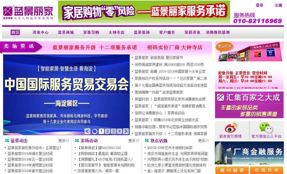 | 網站簡介: 北京藍景麗家大鐘寺家居廣場(以下簡稱藍景麗家)地處北京市海淀區(qū)北三環(huán)西路23號,總建筑面積是92000多平方米,是集家具、家裝、建材、飾品展示銷售為一體的家居企業(yè)。藍景麗家現(xiàn)有品牌家居廠商500多家,知名家裝公司10家,內部購物環(huán)境舒適優(yōu)美、硬件配套設施完善齊全,質量售后服務周到熱忱,誠信經營公平交易,多年來憑借高品質的家居商品,科學完善的管理體系及堅持不懈的誠信服務,彰顯了藍景麗家的品牌優(yōu)勢,塑造了“北京人的誠信家居商場”這一企業(yè)誠信品牌形象。藍景麗家在廠商與商品管理方面,一貫實行產品標準準入制等一系列配套管理措施;規(guī)范廠商必須使用標準的北京市家具建材買賣合同進行統(tǒng)一收銀交易認證;對所有銷售商品執(zhí)行先行負責制。在企業(yè)內部管理方面,藍景麗家堅持運行國際化、標準化的內部管理體系。截止到2016年,商城在全國家居行業(yè)內已連續(xù)十三年連續(xù)通過“質量/環(huán)境/職業(yè)健康安全”三項國際管理體系認證。 |