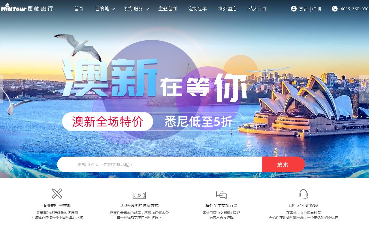 | 網(wǎng)站簡(jiǎn)介: 蜜柚旅行隸屬于上海覓程網(wǎng)絡(luò)科技有限公司,創(chuàng)立于2014年,旨在讓用戶真正享受輕松自在、趣味非凡的海外私人旅行!蜜柚旅行致力于在游客與境外終端導(dǎo)游之間建立直接對(duì)接的平臺(tái),讓用戶享受到定制化深度旅游的同時(shí),節(jié)省大量的時(shí)間、精力和成本;也為有能力的終端導(dǎo)游創(chuàng)造了可以實(shí)現(xiàn)差異化服務(wù)的空間,從而提供更具當(dāng)?shù)靥厣木包c(diǎn)線路和旅游項(xiàng)目提供給用戶。蜜柚旅行,尋覓最誘人的海外本地旅行! |