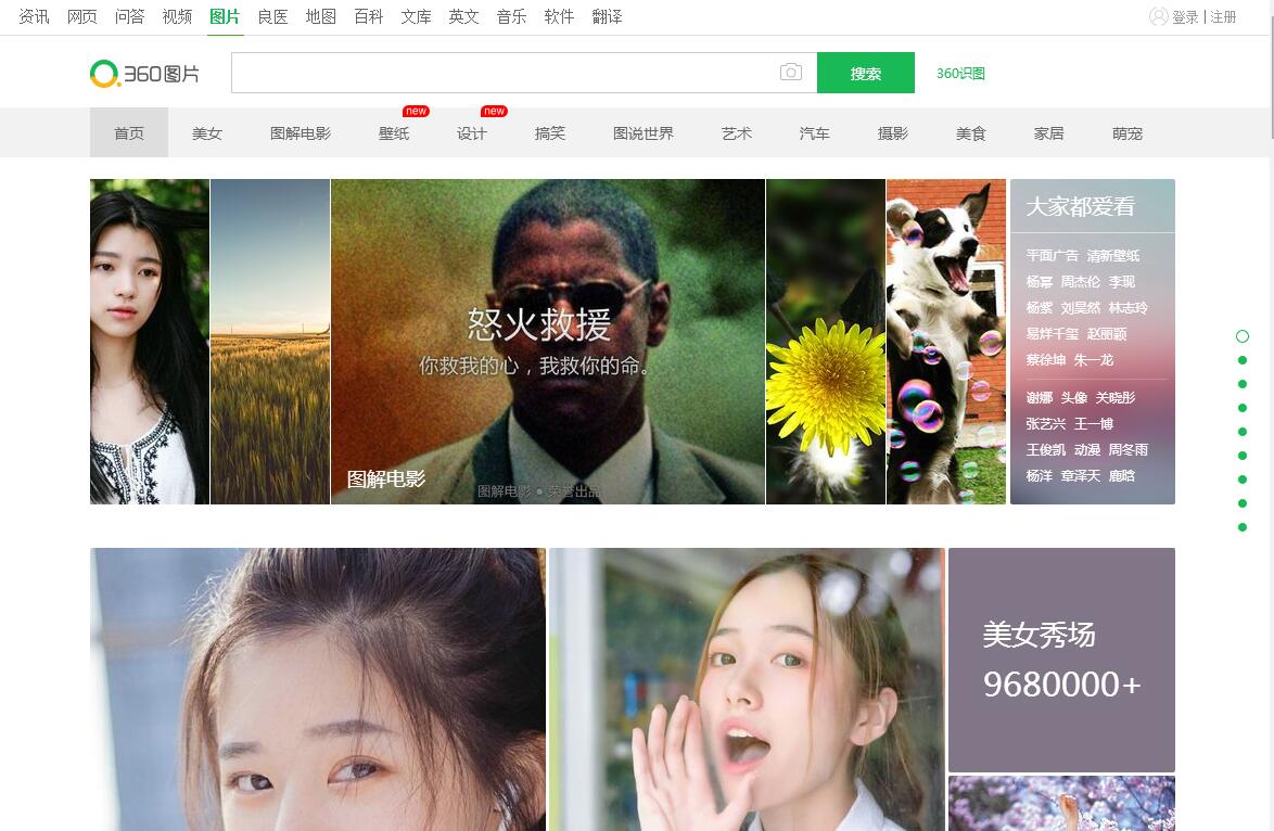 | 網(wǎng)站簡介: 360圖片 - 網(wǎng)羅天下美圖。更精準(zhǔn)的搜索,更流暢的觀賞;360圖片收錄幾十億高清美圖,為用戶提供壁紙、素材、頭像、寫真、攝影、風(fēng)景等最新、最全的高質(zhì)量圖片搜索服務(wù)! |