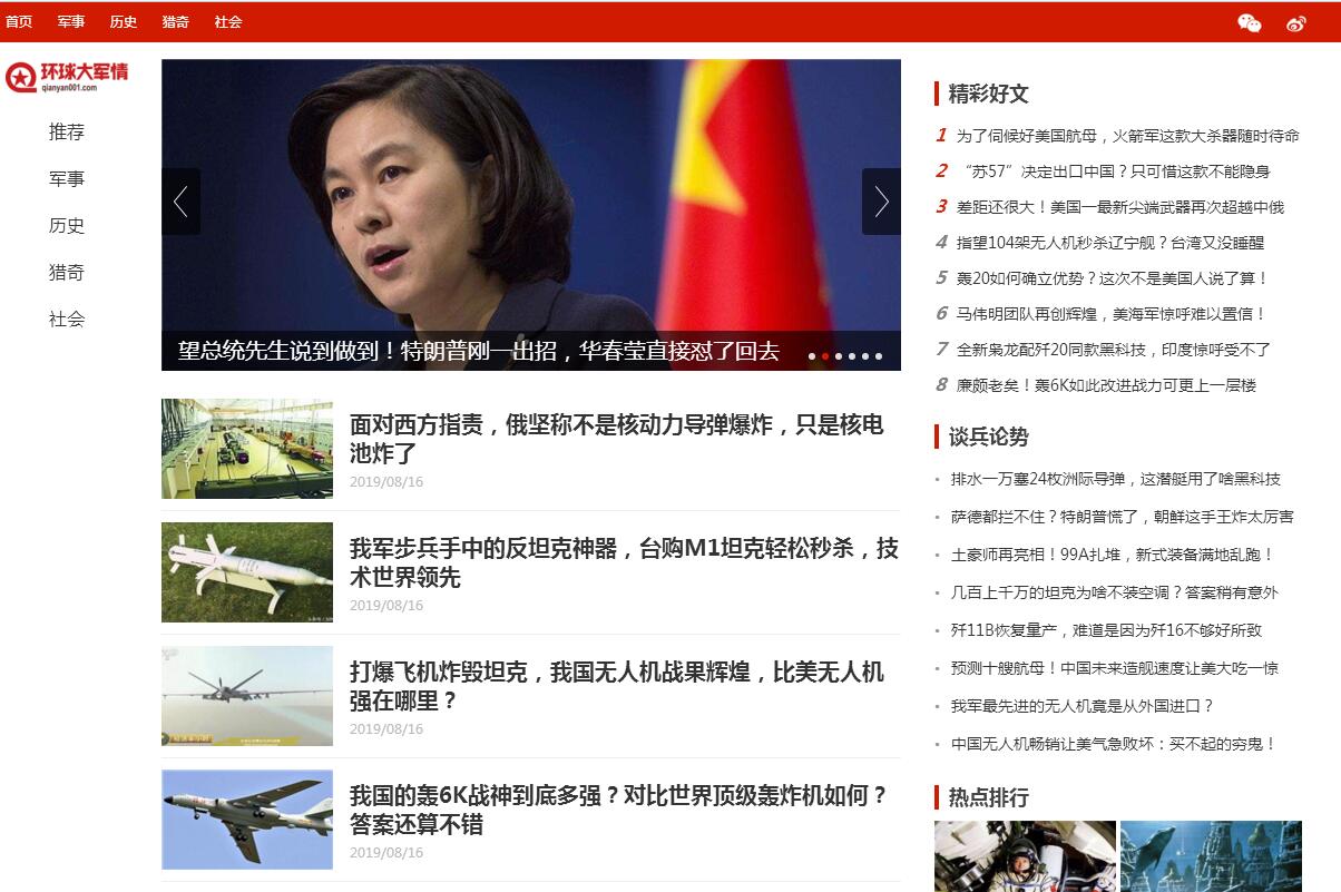 | 網(wǎng)站簡(jiǎn)介: 環(huán)球大軍情是中國(guó)最權(quán)威的軍事門(mén)戶(hù)網(wǎng)站之一,提供最新中國(guó)軍事新聞,世界軍事新聞還有網(wǎng)友對(duì)中國(guó)軍事的最新爆料。 |