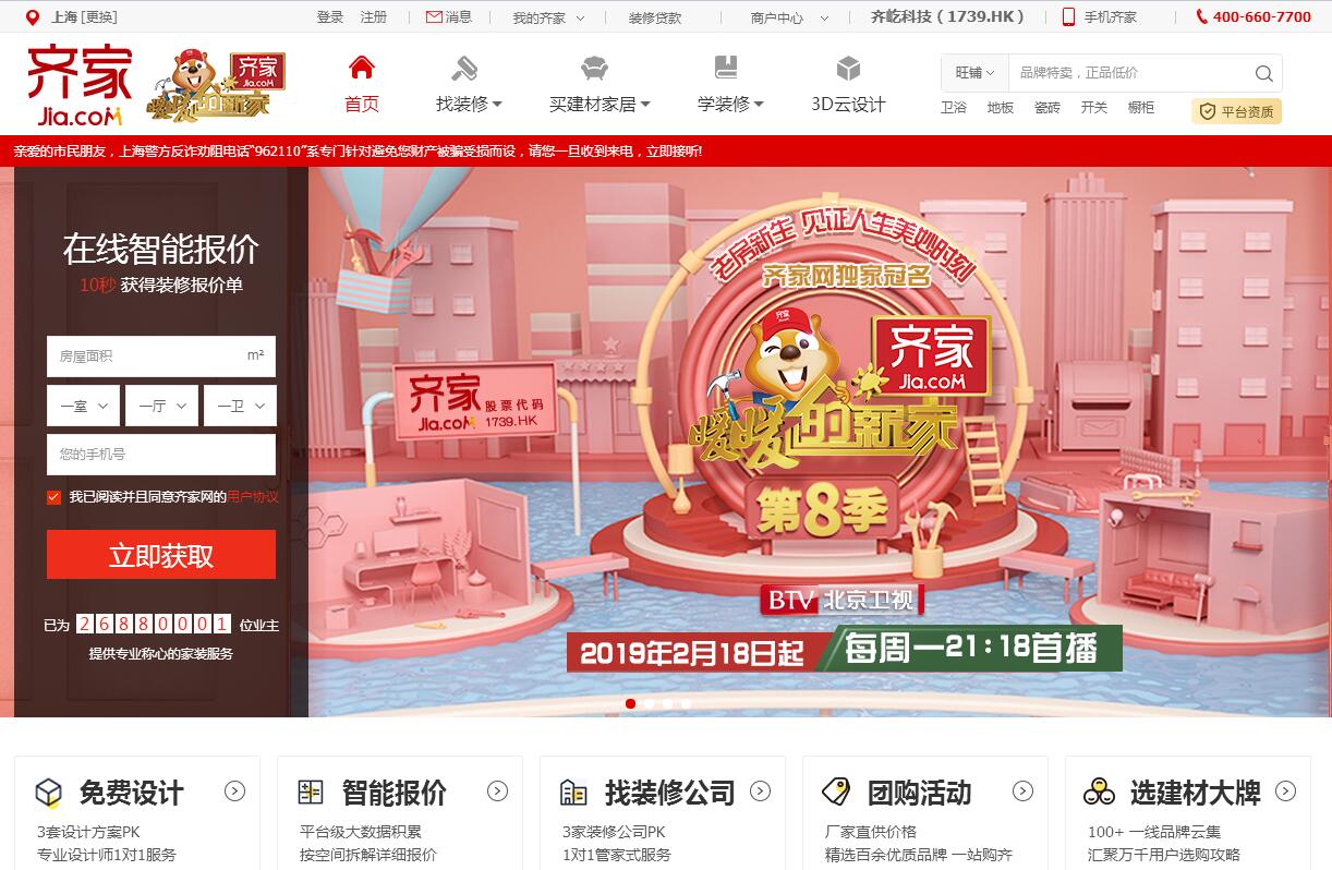 齊家網(wǎng)成立于2007年,創(chuàng)始人鄧華金,員工超1000人。2018年7月12日,齊家網(wǎng)母公司齊屹科技成功登陸港交所主板(股票代碼1739.HK)。自成立以來(lái),齊家網(wǎng)秉承“用戶為先”理念,以提升行業(yè)效率和用戶極致體驗(yàn)為己任,不斷創(chuàng)新發(fā)展,深度打造融合線上線下的家裝新模式,為家裝用戶提供更低價(jià)格、更高品質(zhì)和更好服務(wù)的裝修解決方案, 是用戶在互聯(lián)網(wǎng)尋求家裝服務(wù)的優(yōu)選平臺(tái)。齊家網(wǎng)業(yè)務(wù)涵蓋家裝平臺(tái)、自營(yíng)裝修業(yè)務(wù)、齊家特許經(jīng)營(yíng)網(wǎng)絡(luò)、供應(yīng)鏈等多個(gè)子生態(tài)。目前,齊家網(wǎng)已經(jīng)建立了一個(gè)蓬勃發(fā)展的生態(tài)體系,聚集超過(guò)7500家優(yōu)質(zhì)裝修服務(wù)商,在全國(guó)290余個(gè)城市落地,月獨(dú)立訪客超5000萬(wàn),并吸引著越來(lái)越多的裝修公司、用戶以及其他家裝價(jià)值鏈相關(guān)的群體加入。齊家網(wǎng)自營(yíng)家裝業(yè)務(wù)包括齊家博若森、齊家居美,特許經(jīng)營(yíng)網(wǎng)絡(luò)為齊家典尚,目前,齊家網(wǎng)自營(yíng)家裝業(yè)務(wù)和特許經(jīng)營(yíng)模式已覆蓋全國(guó)170余個(gè)城市。