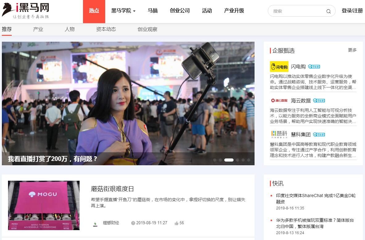 | 網(wǎng)站簡介: i黑馬是面向創(chuàng)業(yè)者的創(chuàng)新型綜合服務(wù)平臺,掌握創(chuàng)業(yè)創(chuàng)新領(lǐng)域強(qiáng)有力話語權(quán)的媒體矩陣,致力于幫助創(chuàng)業(yè)者獲得投資、人才、宣傳和經(jīng)驗。 |