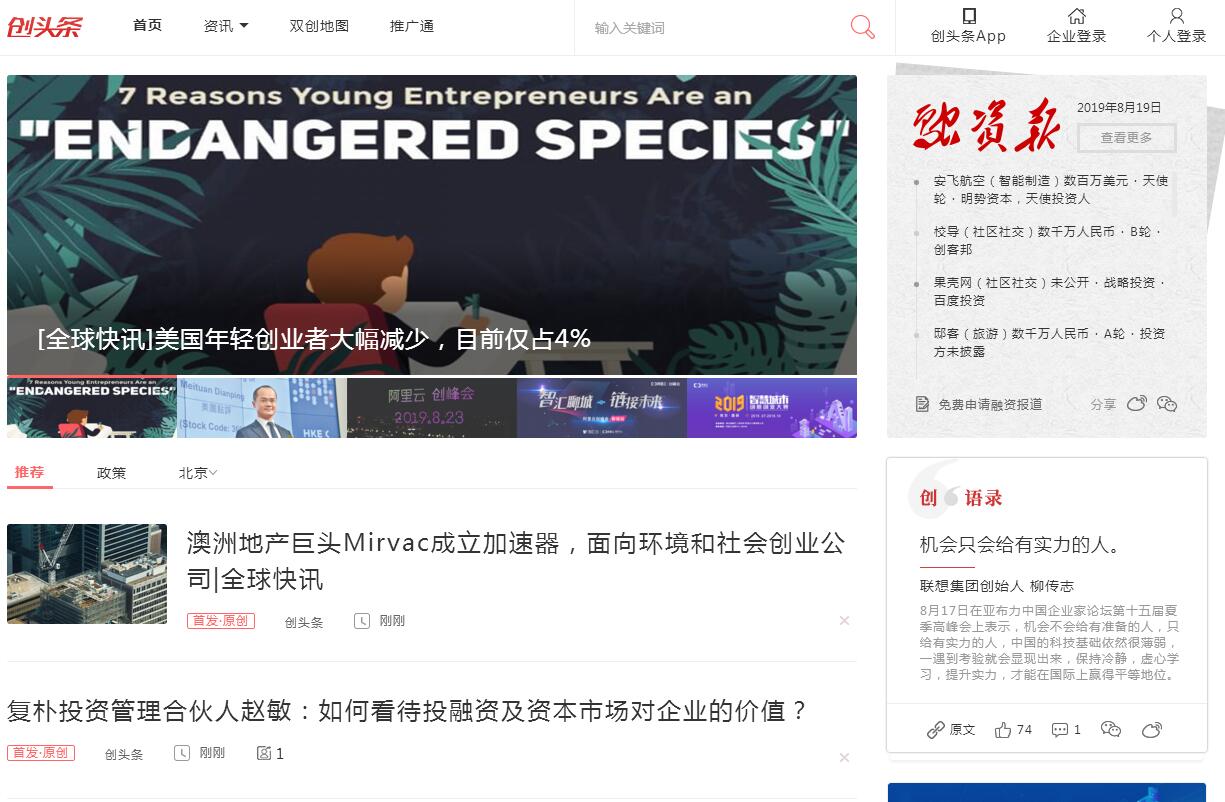 | 網(wǎng)站簡介: 創(chuàng)頭條為您提供創(chuàng)投圈最新鮮的創(chuàng)業(yè)資訊、投資資訊、互聯(lián)網(wǎng)創(chuàng)業(yè)資訊等信息,致力于幫助創(chuàng)業(yè)者和投資人實(shí)現(xiàn)個(gè)性化定制,為創(chuàng)業(yè)企業(yè)提供優(yōu)質(zhì)的企業(yè)服務(wù)。 |