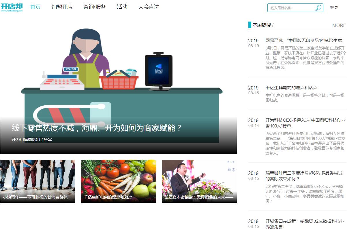 開店邦是聚焦中國高成長連鎖門店的一站式服務(wù)平臺。公司隸屬于上海愿達(dá)實業(yè)有限公司,前身是創(chuàng)業(yè)邦旗下的一個事業(yè)部,是美國最大的商業(yè)媒體Entrepreneur中國市場獨家合作伙伴。我們以"讓天下沒有難開的門店"為企業(yè)愿景,通過我們對連鎖企業(yè)的深度研究和大數(shù)據(jù)基礎(chǔ),構(gòu)建完善的生態(tài)鏈和深度服務(wù)能力,助力中國優(yōu)質(zhì)連鎖企業(yè)的高成長,服務(wù)、賦能、孵化代表未來的新型連鎖品牌。開店邦致力于將中國消費連鎖企業(yè)的商業(yè)品牌和渠道價值最大化,提供包括互聯(lián)網(wǎng)媒體、加盟招商、連鎖顧問與咨詢服務(wù)、投融資服務(wù)等一站式開店綜合服務(wù)。幫助“0-1”階段10-50家規(guī)模的連鎖品牌建立健康的連鎖商業(yè)模式,找到好賽道、好品類和好模式;助力“1-10”階段50-500家規(guī)模的連鎖企業(yè),完善其在高速成長階段缺失的關(guān)鍵能力,幫助企業(yè)在新零售轉(zhuǎn)型時搭建基礎(chǔ)設(shè)施。公司成功舉辦10屆中國高成長連鎖行業(yè)峰會及百余場會議論壇,評選10屆“中國高成長連鎖50強(qiáng)。我們幫助近30家連鎖企業(yè)成功實現(xiàn)投融資,累計投融資完成金額2億人民幣;深度服務(wù)超過100家連鎖企業(yè);目前已擁有超200名行業(yè)專家,撰寫并發(fā)布了500份深度研究報告;積累沉淀了3000家連鎖企業(yè)數(shù)據(jù)庫;擁有30萬高端加盟開店用戶。