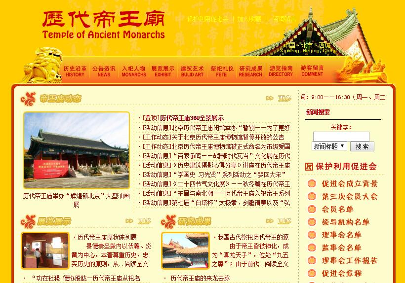 歷代帝王廟是中國古建筑寶庫中的精品,是以伏羲、炎黃祖先為祭祀中心,以統(tǒng)一多民族帝王系列和歷代功臣名將為祭祀體系的一處皇家廟宇。保護(hù)利用帝王廟的目的是使歷代帝王廟成為吸引海內(nèi)外華人祭祖炎黃、頌揚(yáng)先賢、增強(qiáng)歷史自豪感和民族凝聚力的重要文化場所。為了呼喚更多的華夏兒女、炎黃子孫對我們民族祖先、國家歷史的景仰和尊重,通過支持保護(hù)開放帝王廟,增強(qiáng)我們的民族向心力,凝聚力和歷史自豪感,為培育我們的民族精神,實(shí)現(xiàn)民族復(fù)興起到提供精神動(dòng)力和歷史支撐的獨(dú)特作用,經(jīng)有關(guān)部門批準(zhǔn),西城區(qū)文化委員會(huì)、西城海外聯(lián)誼會(huì)、西城區(qū)對外文化交流協(xié)會(huì)聯(lián)合發(fā)起,于2003年4月16日成立北京歷代帝王廟保護(hù)利用促進(jìn)會(huì)。北京歷代帝王廟保護(hù)利用促進(jìn)會(huì)是由西城區(qū)文化委員會(huì)、西城海外聯(lián)誼會(huì)、西城區(qū)對外文化交流協(xié)會(huì)發(fā)起成立,是經(jīng)政府社會(huì)團(tuán)體管理機(jī)關(guān)核準(zhǔn)登記的非營利性社會(huì)團(tuán)體法人。遵守憲法、法律、法規(guī)和國家政策;遵守社會(huì)道德風(fēng)尚,弘揚(yáng)中華民族悠久歷史文化,增強(qiáng)民族凝聚力,促進(jìn)國家統(tǒng)一,民族團(tuán)結(jié);保護(hù)、修繕、開放和利用北京歷代帝王廟,對北京歷代帝王廟的歷史文化進(jìn)行系統(tǒng)研究。接受海內(nèi)外各社團(tuán)、企事業(yè)單位和個(gè)人自愿捐贈(zèng)的 資金與實(shí)物,資助北京歷代帝王廟的修繕、恢復(fù)和保護(hù)性設(shè)施建設(shè),促進(jìn)保護(hù)利用工作發(fā)展;對歷代帝王廟的歷史文化價(jià)值進(jìn)行綜合研究;資助歷代帝王廟的學(xué)術(shù)研究活動(dòng)和書刊的出版發(fā)行;舉辦各種形式的研討會(huì)和面向海內(nèi)外的宣傳活動(dòng);協(xié)調(diào)和組織在北京歷代帝王廟舉行的各種文化活動(dòng)。