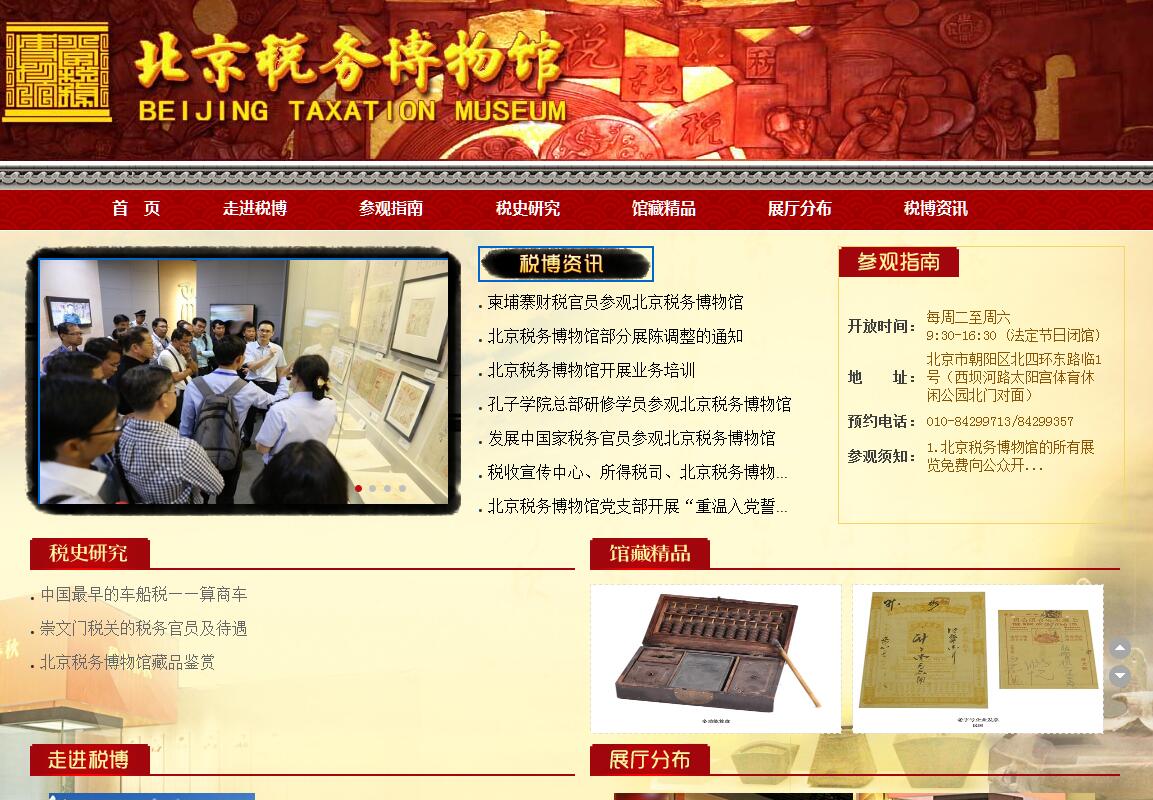北京稅務(wù)博物館始建于2005年,曾落址故宮東側(cè)普度寺內(nèi),當(dāng)時(shí)是全國(guó)第一家省級(jí)稅務(wù)部門籌建的專業(yè)性博物館,2006年5月對(duì)社會(huì)公眾開放同時(shí)被授予北京市首家市級(jí)法制宣傳教育基地,2006年底被東城區(qū)教委授予愛國(guó)主義教育基地,2009年9月,因原址普度寺文物保護(hù)暫停展覽。2013年,由國(guó)家稅務(wù)總局北京市稅務(wù)局主辦,朝陽(yáng)區(qū)人民政府和中央財(cái)經(jīng)大學(xué)協(xié)辦,歷時(shí)兩年完成復(fù)建。2015年9月19日,北京稅務(wù)博物館在朝陽(yáng)區(qū)太陽(yáng)宮體育休閑公園附近易址重張,對(duì)稅務(wù)系統(tǒng)內(nèi)部試運(yùn)行,2016年5月正式向公眾免費(fèi)開放北京稅務(wù)博物館展廳面積約1400平方米,目前共展出青銅器、陶器、鐵器、貨幣、票據(jù)、契約等文物史料2941件。地上一層展廳面積約為790平方米,展線約210延米,主要展出中國(guó)古代和近現(xiàn)代稅收文物;地下一層展廳面積約600平方米,展線約210延米,主要展示1949年至2014年北京當(dāng)代稅收發(fā)展歷史。北京稅務(wù)博物館的建立,旨在傳承稅收歷史,弘揚(yáng)稅收文化。希望通過(guò)文物和文獻(xiàn),為參觀者梳理中國(guó)稅收歷史發(fā)展的脈絡(luò),展示古都北京的稅收發(fā)展歷史,使每一位來(lái)訪者能夠在此探尋中國(guó)稅收歷史發(fā)展的規(guī)律,領(lǐng)略北京稅收文化的內(nèi)涵和底蘊(yùn)。在我國(guó),“稅收取之于民,用之于民”是作為社會(huì)主義稅收的基本特征,很早就被提出。北京稅務(wù)博物館希望通過(guò)深入淺出地陳列講解,能夠令參觀者更全面更深入地理解這句話的內(nèi)涵,樹立依法納稅的意識(shí),了解稅收不僅在各方面服務(wù)于百姓生活,更是國(guó)富民強(qiáng)的基石。