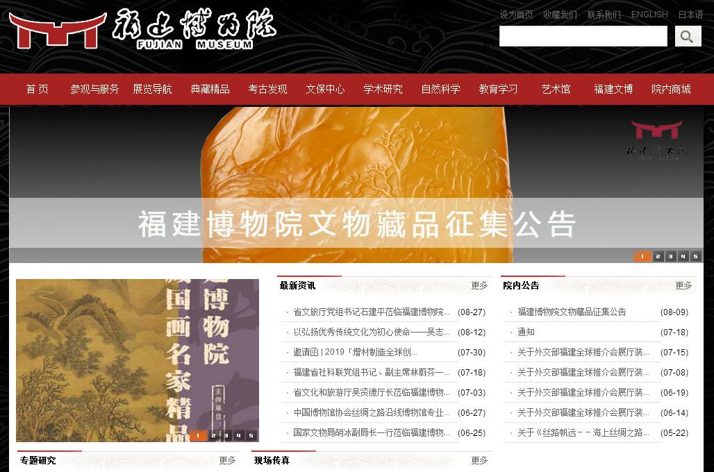 福建博物院于1933年成立,2002年重建于西湖之畔,是福建省最重要的文物考古、收藏、研究、教育、展示、對(duì)外交流機(jī)構(gòu),是首批國家一級(jí)博物館。在全國4600多家博物館中,是唯一集博物館、自然館、積翠園藝術(shù)館、考古研究所、文物保護(hù)中心、國家水下考古基地“六合一”的綜合性博物館。擁有館藏文物和各類標(biāo)本28萬余件,其中珍貴文物3萬余件。現(xiàn)有建筑面積近3.6萬平方米,展廳面積約1.2萬平方米,除設(shè)立福建古代文明之光、弦歌悠遠(yuǎn)、意匠天工、閩跡尋蹤、絲路帆遠(yuǎn)、恐龍世界、閩海蔚藍(lán)等基本陳列外,每年還舉辦30多個(gè)臨時(shí)展覽,其中,福建博物院聯(lián)合沿海七省45家博物館、薈萃300多件文物精品,創(chuàng)辦的“絲路帆遠(yuǎn)——海上絲綢之路文物精品七省聯(lián)展”,連續(xù)兩年被評(píng)為全省文化大事之一;榮獲全國博物館最高獎(jiǎng)的十大陳列展覽精品獎(jiǎng),受到省政府獎(jiǎng)勵(lì)表彰;已前往包括紐約聯(lián)合國總部在內(nèi)的15國29城展出?!熬G葉對(duì)根的情意——華僑華人奉獻(xiàn)展”入選國家文物局“弘揚(yáng)優(yōu)秀傳統(tǒng)文化、培育社會(huì)主義核心價(jià)值觀”主題展覽十三個(gè)項(xiàng)目之一。自2008年免費(fèi)開放以來,福建博物院通過開展“文物在我身邊——福建文博進(jìn)校園,進(jìn)社區(qū)雙百活動(dòng)”“文博大看臺(tái)”“紙上、網(wǎng)上、空中博物館”“十大課題、五年計(jì)劃、百萬投入”等舉措,各項(xiàng)工作進(jìn)一步向前推進(jìn),獲得社會(huì)各界廣泛好評(píng)。2015年榮獲年度“全國最具創(chuàng)新力博物館”稱號(hào),成為本次唯一獲此殊榮的國有博物館。2016年榮獲由國際博協(xié)基金會(huì)、最佳文化遺產(chǎn)組織、“我們歐洲”組織頒發(fā)的“2016年度全球博物館及文化遺產(chǎn)保護(hù)領(lǐng)域最杰出、最具創(chuàng)新力、最具合作啟發(fā)意義項(xiàng)目”獎(jiǎng),并獲邀加入 “最佳文化遺產(chǎn)組織杰出俱樂部”。10月,作為唯一一家博物館代表參加維也納聯(lián)合國總部召開的“‘一帶一路'包容與可持續(xù)城市展覽與對(duì)話”上發(fā)表題為《絲路帆遠(yuǎn)行萬里》的主旨演講。