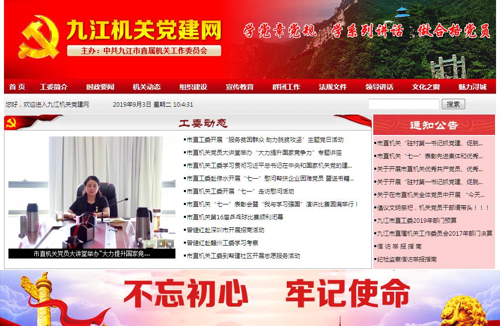 九江市直機(jī)關(guān)工委是中共九江市委派出的職能機(jī)構(gòu)。負(fù)責(zé)領(lǐng)導(dǎo)市直機(jī)關(guān)單位(含部分中央,省駐潯單位)黨的工作。其主要職能是:抓好市直機(jī)關(guān)黨的思想建設(shè)、組織建設(shè)、作風(fēng)建設(shè);加強(qiáng)對(duì)市直部門領(lǐng)導(dǎo)班子的民主生活會(huì)的管理,對(duì)黨員領(lǐng)導(dǎo)干部的監(jiān)督,并及時(shí)向市委反映情況;指導(dǎo)市直機(jī)關(guān)黨組織加強(qiáng)社會(huì)道德建設(shè),文明建設(shè),法制宣傳教育和社會(huì)穩(wěn)定工作;負(fù)責(zé)市直各部門機(jī)關(guān)黨組織和機(jī)關(guān)紀(jì)委領(lǐng)導(dǎo)班子組成人員的審批,及機(jī)關(guān)黨組織專職副書記的任免、考核、培訓(xùn)工作和基層黨組織變更、調(diào)正、換屆的審批;領(lǐng)導(dǎo)市直各部門機(jī)關(guān)黨的紀(jì)律檢查工作,審理、批準(zhǔn)科級(jí)黨員干部及黨組織違反黨紀(jì)的處理決定;領(lǐng)導(dǎo)市直機(jī)關(guān)工、青、婦等群眾組織的工作;指導(dǎo)全市各縣 (市、區(qū)、山)工委工作;承辦市委交辦的各項(xiàng)中心工作。中共九江市直機(jī)關(guān)工委現(xiàn)管轄142個(gè)直屬機(jī)關(guān)黨組織,管理黨員3.5萬名。現(xiàn)有12個(gè)工作部門,其中內(nèi)設(shè)辦公室、組織部、宣傳部、普法辦、機(jī)關(guān)黨總支、610辦、調(diào)研室、黨建信息科及黨員教育培訓(xùn)科等9個(gè)部門,另有工會(huì)工委、團(tuán)工委、婦工委3個(gè)派出機(jī)構(gòu)。