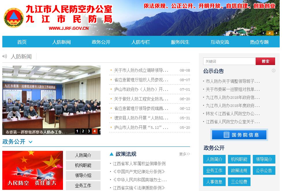 九江市人民防空辦公室(民防局)主要職責(zé):(一)負(fù)責(zé)《中華人民共和國人民防空法》等法律、法規(guī)的貫徹實(shí)施和監(jiān)督桂查.貫徹執(zhí)行國家人民防空工作的方針、政策.?dāng)M訂本市人民防空工作的有關(guān)地方性規(guī)范文件并組織實(shí)施和監(jiān)督檢查。(二)擬定人民防空建設(shè)的中長期發(fā)展規(guī)劃,制定全市人民防空建設(shè)年度計(jì)劃。組織擬訂人民防空建設(shè)與城市相結(jié)合的規(guī)劃,審核城市總體規(guī)劃中貫徹落實(shí)人民防空要求及人民防空建設(shè)規(guī)劃情況。依法對城市和經(jīng)濟(jì)目標(biāo)的人民防空建設(shè)進(jìn)行監(jiān)督檢查。(三)組織開展人民防空指揮工作。指導(dǎo)縣(市、區(qū))制定城市防空襲方案,監(jiān)督檢查城市防空襲方案、各項(xiàng)保障方案和重要經(jīng)濟(jì)目標(biāo)防護(hù)的落實(shí)。依法組織城市防空襲演習(xí).指導(dǎo)群眾防空組織建設(shè)和訓(xùn)練工作。參與承擔(dān)政府賦予的防災(zāi)救災(zāi)任務(wù),利用人民防空設(shè)施和人民防空專業(yè)隊(duì)伍為經(jīng)濟(jì)建設(shè)和防災(zāi)救災(zāi)服務(wù)。(四)指導(dǎo)和組織人防工程維護(hù)管理.平時(shí)開發(fā)利用和城市地下空間開發(fā)建設(shè)中落實(shí)人防要求的工作。負(fù)責(zé)人防工程(含結(jié)合民用建筑修建防空地下室)的審批、質(zhì)量監(jiān)督和竣工驗(yàn)收。(五)組織管理人民防空指揮信息化建設(shè)。指導(dǎo)和開展指揮自動(dòng)化、空情報(bào)知、防空警報(bào)、通信保障和信息保密系統(tǒng)建設(shè),建立健全人防指揮信息系統(tǒng)值勤和維護(hù)菅理制度,保障全市人防指揮信息系統(tǒng)暢通。(六)負(fù)責(zé)人民防空宣傳教育工作。組織制定人民防空和參與防災(zāi)救災(zāi)教育計(jì)劃并制作實(shí)施。(七)管理人民防空經(jīng)費(fèi)、物資和資產(chǎn)。依法籌措社會負(fù)擔(dān)的人防建設(shè)資金,編制人民防空經(jīng)費(fèi)預(yù)決算,對使用情況實(shí)施監(jiān)督檢查。(八)戰(zhàn)時(shí)組織開展城市人民防空襲斗爭。(九)承辦市政府、軍分區(qū)和國防動(dòng)員委員會交辦的其他事項(xiàng)。