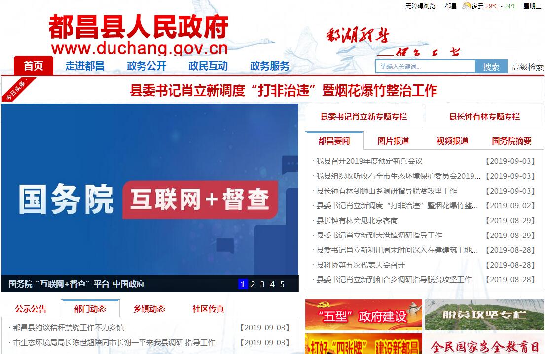都昌縣位于江西省北部,隸屬九江市,瀕臨鄱陽湖,地處“五水匯一湖”要沖,居南昌、九江 、景德鎮(zhèn)“金三角”中心地帶,南聯(lián)五水,北通長江,杭瑞高速和即將開工的九景衢鐵路、都九高速交匯境內(nèi)。國土面積2669.5平方公里,其中,水域面積1390平方公里,占國土面積的52.1%,擁有鄱陽湖1/3的水域。全縣轄24個鄉(xiāng)鎮(zhèn), 259個村委會,82.66萬人口,其中21個鄉(xiāng)鎮(zhèn)沿湖,湖岸線長達(dá)185公里,占整個湖岸線的1/10強(qiáng)。都昌歷史悠久,文化璀璨,自漢高祖六年設(shè)縣,至今已有2200多年的歷史,是江西18個文明古縣之一。底蘊深厚的鄱陽湖文化,孕育了東晉大司馬陶侃、宋代抗金名將劉琦、南宋愛國丞相江萬里等一大批歷史名人。都昌境內(nèi)旅游資源豐富,有江南最大的戈壁 灘──多寶沙山,有被譽為“東方百慕大”之稱的老爺廟水域,有“小臺灣”之稱的朱袍山、馬鞍島。秀麗的山水,令李白、謝靈運、陶淵明等一批文人墨客流連忘返。宋代大文豪蘇東坡游覽都昌時曾留下優(yōu)美詩篇:“鄱陽湖上都昌縣,燈火樓臺一萬家。水隔南山人不渡,東風(fēng)吹老碧桃花”。都昌素有魚米之鄉(xiāng)的美譽。物產(chǎn)豐饒,名優(yōu)特產(chǎn)豐富,銀魚、青蝦、螃蟹、豆參、醉魚遠(yuǎn)近聞名,珍珠系列產(chǎn)品響譽海內(nèi)外,有“中國淡水珍珠之鄉(xiāng)”、“世界白鶴王國”之稱;有水稻、棉花、油菜、紫皮蒜、藥材、林果等經(jīng)濟(jì)作物生長的天然環(huán)境,這里還是全國糧食生產(chǎn)先進(jìn)縣、全國新增千億斤糧食基地縣、全國新能源產(chǎn)業(yè)百強(qiáng)縣、全國綠色食品原料標(biāo)準(zhǔn)化生產(chǎn)基地縣、全國優(yōu)質(zhì)棉生產(chǎn)基地縣。近年來,全縣上下深入貫徹落實科學(xué)發(fā)展觀,積極策應(yīng)鄱陽湖生態(tài)經(jīng)濟(jì)區(qū)重大戰(zhàn)略,認(rèn)真貫徹市委、市政府提出的“兩區(qū)互動、強(qiáng)工興城”的戰(zhàn)略決策,圍繞“強(qiáng)工興城爭進(jìn)位,凝心聚力促趕超,建設(shè)鄱陽湖區(qū)生態(tài)經(jīng)濟(jì)強(qiáng)縣”的發(fā)展主題,以項目建設(shè)為主線,把發(fā)展作為第一要務(wù),把關(guān)注民生作為第一事務(wù),攻堅克難,銳意進(jìn)取,全縣經(jīng)濟(jì)社會呈現(xiàn)出提速趕超、綠色崛起的強(qiáng)勁態(tài)勢。工業(yè)經(jīng)濟(jì)突破發(fā)展,積極推進(jìn)“企業(yè)做大、產(chǎn)業(yè)集聚”戰(zhàn)略,初步形成了服裝鞋帽、汽車零部件、農(nóng)副產(chǎn)品精深加工等三大主導(dǎo)產(chǎn)業(yè);城市建設(shè)突飛猛進(jìn),高起點、高標(biāo)準(zhǔn)打造了濱水西區(qū)和城南新區(qū),城市建設(shè)挺進(jìn)“鄱陽湖時代”,并成功創(chuàng)建“省級衛(wèi)生縣城”;農(nóng)業(yè)、生態(tài)、旅游統(tǒng)籌推進(jìn),人民生活水平進(jìn)一步提高,社會局面和諧穩(wěn)定。2019年上半年全縣完成生產(chǎn)總值69.95億元,財政總收入10億元,社會消費品零售總額26.3億元,完成外貿(mào)出口12.4億元,城鎮(zhèn)居民可支配收入12616元,農(nóng)村居民可支配收入4071元。"梟陽演化為都昌,蘇子名篇萬古長,借得東風(fēng)潤墨硯,今朝勝跡寫華章"。新一屆縣委縣政府將全面貫徹落實科學(xué)發(fā)展觀,積極融入鄱陽湖生態(tài)經(jīng)濟(jì)區(qū)建設(shè),緊緊圍繞“強(qiáng)工興城爭進(jìn)位,凝心聚力促趕超”這一主題,堅定不移地實施一大主戰(zhàn)略(重大項目帶動)、全力主攻兩區(qū)(園區(qū)、城區(qū))、推進(jìn)三大建設(shè)(新農(nóng)村建設(shè)、生態(tài)建設(shè)、和諧社會建設(shè)),實現(xiàn)工業(yè)兩年翻一番、財政三年翻一番、經(jīng)濟(jì)總量五年翻一番,五年決戰(zhàn)工業(yè)500億,努力建設(shè)面積30平方公里、人口30萬的濱湖親水生態(tài)田園中等城市,把都昌打造成鄱陽湖畔一顆耀眼的明珠。