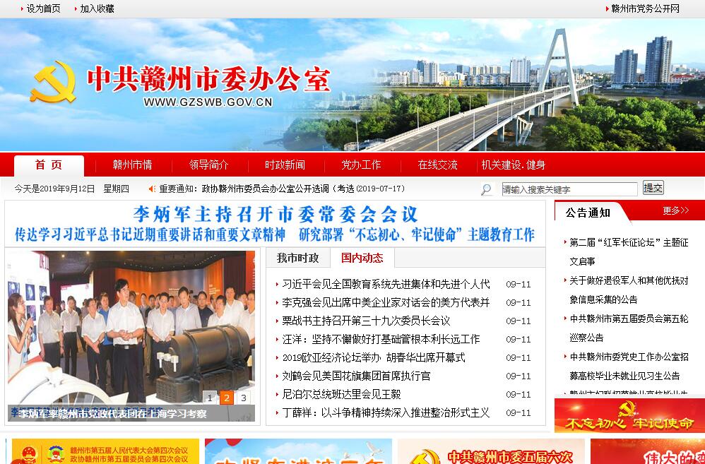 | 網(wǎng)站名稱: | 中共贛州市委辦公室 | ||