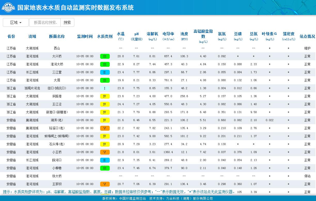 | 網(wǎng)站名稱: | 國家地表水水質(zhì)自動監(jiān)測實時數(shù)據(jù)發(fā)布系統(tǒng) | ||