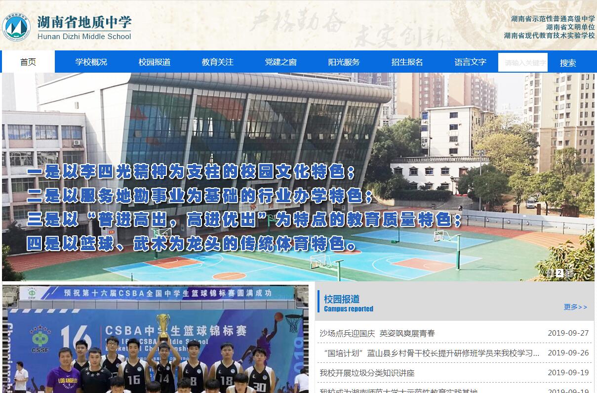 湖南省地質(zhì)中學(xué)創(chuàng)辦于1955年,原隸屬湖南省地勘局,2019年移交長沙市人民政府管理,為長沙市教育局直屬公辦學(xué)校。2001年、2004先后被省教育廳授牌為“湖南省重點(diǎn)中學(xué)” “湖南省示范性普通高級(jí)中學(xué)”,2000年至2018年連續(xù)18年保持省文明單位榮譽(yù),現(xiàn)被評(píng)為湖南省文明校園。學(xué)校座落長沙市中心,毗鄰天心閣公園、長沙市圖書城、湖南省圖書館,校園雅致,交通十分便利,是讀書求學(xué)的理想之所?,F(xiàn)有初中、高中75個(gè)教學(xué)班,在校學(xué)生3900多人。學(xué)校堅(jiān)持“關(guān)愛全體學(xué)生,推進(jìn)整體進(jìn)步”的辦學(xué)思想,擁有一支具有現(xiàn)代教育理念、熟練掌握現(xiàn)代教育技術(shù)、在省內(nèi)外享有較高聲譽(yù)的教師隊(duì)伍,形成了“敬業(yè)愛生、精教重研”的教風(fēng)。學(xué)?,F(xiàn)有教職工379人,其中特級(jí)教師4名,正高級(jí)教師1人,高級(jí)教師126名,一級(jí)教師130名;有研究生學(xué)歷的教師132名,博士學(xué)歷的教師2名,教師學(xué)歷合格率100%;有徐特立教育獎(jiǎng)獲得者1人,省優(yōu)秀教師4人,省骨干教師培訓(xùn)專家2人,省市名師工作室名師團(tuán)隊(duì)成員2人,市骨干教師23人,市卓越教師4人。學(xué)校擁有現(xiàn)代化的理化生實(shí)驗(yàn)室、錄播教室、通用技術(shù)教室、地質(zhì)礦物標(biāo)本展覽室、教工閱覽室、學(xué)生閱覽室、塑膠運(yùn)動(dòng)場、學(xué)生食堂、體育館、校園電視演播中心等教學(xué)設(shè)施。每間教室均安裝了先進(jìn)的智慧云黑板系統(tǒng)。新型的學(xué)生公寓可容納500人,校圖書館藏書達(dá)二十萬冊。學(xué)校努力推進(jìn)校園文化建設(shè),著力打造精致精美的書香校園。學(xué)校努力推進(jìn)校園文化建設(shè),著力打造花園式校園。學(xué)校以著名科學(xué)家李四光精神為校園文化特色,積極推進(jìn)素質(zhì)教育,注重學(xué)生全面發(fā)展和創(chuàng)新精神的培養(yǎng)。校園文化豐富多彩,學(xué)科競賽碩果累累。辦有《湖南省地質(zhì)中學(xué)報(bào)》、《星源》、《德育園地》、《地中教研》等刊物。近年來,有3000多名學(xué)生在全國、省、市所舉辦的數(shù)、理、化、生奧賽以及音、體、美、作文、科技小制作等競賽中獲獎(jiǎng)。學(xué)校已成為國家CUBA籃球訓(xùn)練基地,籃球隊(duì)多次獲國家級(jí)、省、市中學(xué)生籃球競賽的冠、亞軍。男籃曾代表長沙市參加全國第七屆城運(yùn)會(huì)榮獲第五名,創(chuàng)湖南籃球參加城運(yùn)會(huì)史上最好成績。武術(shù)隊(duì)連續(xù)12年獲全省團(tuán)體冠軍的好成績。近年來,初中畢業(yè)合格率一直穩(wěn)定在98%以上,高考本科上線率為 70% 以上。公費(fèi)生一本上線率100%,有大批學(xué)生考入清華大學(xué)、香港中文大學(xué)、復(fù)旦大學(xué)、浙江大學(xué)、上海交通大學(xué)等國內(nèi)一流高校。我校是省教育廳多次通報(bào)表揚(yáng)的省示范性普通高級(jí)中學(xué)之一。學(xué)校紀(jì)律嚴(yán)明,學(xué)風(fēng)濃厚,連續(xù)多年保持學(xué)生流失率為零、違法犯罪率為零、安全事故率為零的記錄,素以管理嚴(yán)、設(shè)施好、師資優(yōu)、質(zhì)量高而深受社會(huì)的信賴。