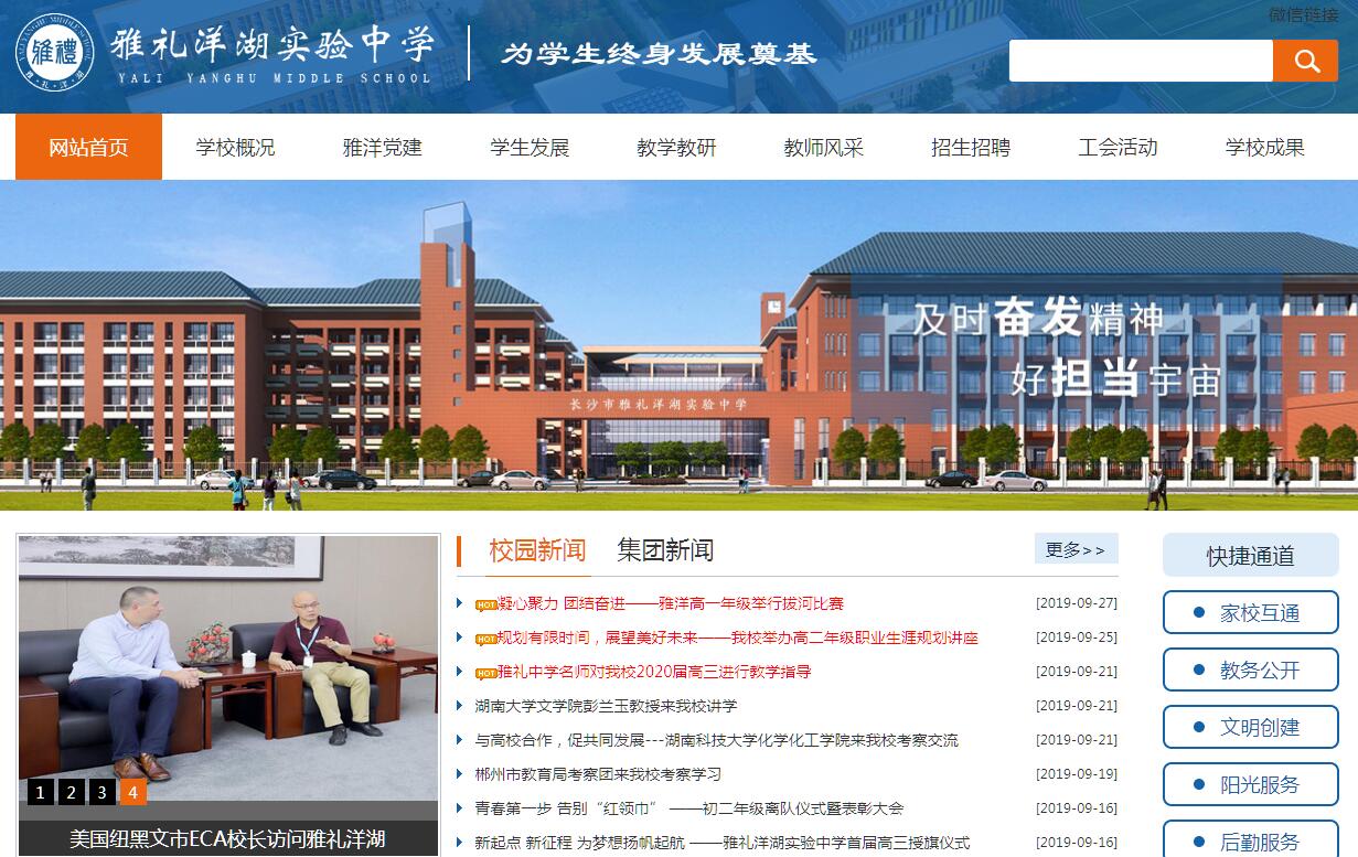 在湖湘文明里,教育的智慧星火,思維之光,革新之氣如湘江碧水,奔騰不息,在每個(gè)時(shí)代筑成華章。110年來的不斷求索,當(dāng)初中西文明碰撞的教育火花,已在湖湘教育的原野燎燎百年,在風(fēng)云變幻的歷史流淌中,成就煌煌盛名;新世紀(jì)以來,“經(jīng)天緯地才能,由學(xué)問成就,及時(shí)奮發(fā)精神,好擔(dān)當(dāng)宇宙”的雅禮校歌更是從楓樹山出發(fā),奔騰于這個(gè)城市的東南西北,藍(lán)白紅的校服如星綴蒼穹,閃耀在大街小巷,公勤誠(chéng)樸的雅禮精神已融入這個(gè)城市的血脈。一座城、一所學(xué)校,一種精神,一個(gè)向往。歲月沉淀,時(shí)光向前,2017年的春雷喚醒星城大地,也催生一所嶄新雅禮學(xué)校的昂揚(yáng)崛起,作為集團(tuán)化辦學(xué)戰(zhàn)略部署、結(jié)構(gòu)調(diào)整的重要舉措,百又十年后的雅禮,再次邁開她雄偉的步伐,首次跨越湘江,傾力打造雅禮洋湖中學(xué),滌蕩三湘教育風(fēng)潮,引領(lǐng)品質(zhì)卓越發(fā)展,為推動(dòng)區(qū)域發(fā)展,創(chuàng)建國(guó)家中心城市貢獻(xiàn)自己的新力。一所與國(guó)家中心城市以及全國(guó)第12個(gè)、中部地區(qū)首個(gè)國(guó)家級(jí)新區(qū)——湘江新區(qū)發(fā)展相匹配的高品質(zhì)市屬公辦完全中學(xué);長(zhǎng)沙兩型社會(huì)建設(shè)、洋湖生態(tài)新城、總部經(jīng)濟(jì)區(qū)社會(huì)經(jīng)濟(jì)發(fā)展的教育引擎;現(xiàn)代城市發(fā)展理念和學(xué)校治理理念下的教育生態(tài)社區(qū)。學(xué)校坐落于長(zhǎng)沙市最大最美濕地公園——洋湖濕地生態(tài)公園南門旁,6000畝公園美景凈收眼底,李自健美術(shù)館、謝子龍影像館、洋湖雕塑園、體育公園比鄰而居。地鐵3號(hào)線、10余路公交線路穿梭而過,瀟湘大道、洋湖大道、湘府路高架、三環(huán)線所組成的城市交通網(wǎng)絡(luò)讓出行變得極為便利。學(xué)校占地面積150多畝,投資3.74億,是長(zhǎng)沙市最大的中學(xué)之一,學(xué)校建筑采用環(huán)保、節(jié)能設(shè)計(jì),塑膠跑道、人工草皮、室內(nèi)裝修等均采用多種兩型理念和綠色設(shè)計(jì)實(shí)施方案,圖書館、體育館、實(shí)驗(yàn)室等設(shè)施設(shè)備全市一流。學(xué)生食堂、宿舍高標(biāo)準(zhǔn)建設(shè),聘請(qǐng)一線品牌提供后勤服務(wù),讓學(xué)生吃得放心,住得安心。湘江岸、洋湖邊、都市里,宜學(xué)、宜居、宜生活,是花園中的最美校園,校園中的最美樂園。雅禮中學(xué)全面托管,采用雅禮中學(xué)管理模式和課程教學(xué)方式,統(tǒng)一辦學(xué)理念,統(tǒng)一管理標(biāo)準(zhǔn),統(tǒng)一教學(xué)計(jì)劃,統(tǒng)一考試評(píng)價(jià),薈萃集團(tuán)教育資源之精華。秉承“為學(xué)生終身發(fā)展奠基”理念,實(shí)施“自主教育、個(gè)性教育、開放教育”策略,構(gòu)建尊重個(gè)性、貼近生命、走向自主的課程實(shí)施體系和多元兼容的評(píng)價(jià)體系,培養(yǎng)提升學(xué)生的“自立品質(zhì)、家國(guó)情懷、國(guó)際視野、人文素養(yǎng)、科學(xué)精神”,不斷呈現(xiàn)學(xué)生個(gè)體生命氣象,讓每一位學(xué)生都擁有健康健全的人格、融貫中西的智慧以及幸福完整的人生,成為有益于國(guó)家、社會(huì)的優(yōu)秀人才。市教育局抽調(diào)教育系統(tǒng)年富力強(qiáng)、經(jīng)驗(yàn)豐富、成績(jī)突出的中青年干部組成領(lǐng)導(dǎo)班子,雅禮中學(xué)派出校長(zhǎng)、教學(xué)副校長(zhǎng)、業(yè)務(wù)管理中層干部和學(xué)科骨干教師,初高中教學(xué)資源、師資培養(yǎng)與雅禮及集團(tuán)學(xué)校無縫對(duì)接,其他教師全部由雅禮中學(xué)統(tǒng)一招聘,從全國(guó)遴選優(yōu)秀師資,前期安排在雅禮、南雅等集團(tuán)學(xué)校關(guān)鍵教學(xué)崗位跟班學(xué)習(xí),不斷浸潤(rùn)雅禮文化,積累教學(xué)素養(yǎng)。在雅禮110余年的教育征程里,尋找與追求的是生命個(gè)體與自然的和諧發(fā)展,學(xué)校與社會(huì)的相融共生。以兩型社會(huì)建設(shè)為出發(fā)點(diǎn),以人才培養(yǎng)為著力點(diǎn),整合洋湖生態(tài)新城和湘江新區(qū)自然、社會(huì)、歷史、人文等資源,以整個(gè)洋湖片區(qū)、湘江新區(qū)和長(zhǎng)沙城市為依托,構(gòu)建新高考背景下符合中學(xué)生發(fā)展核心素養(yǎng)培育的新型課堂。融入現(xiàn)代城市發(fā)展理念,借鑒國(guó)內(nèi)外先進(jìn)教育思想,突破傳統(tǒng)教育發(fā)展模式,構(gòu)建新型的與國(guó)際接軌的教育生態(tài)社區(qū)。同時(shí)發(fā)揮6年一貫制完全中學(xué)優(yōu)勢(shì),持續(xù)注入雅禮精神強(qiáng)大內(nèi)核驅(qū)動(dòng)力量,為生命成長(zhǎng)奠定堅(jiān)實(shí)基礎(chǔ),拓展學(xué)生未來發(fā)展空間。追隨國(guó)家2020普及高中教育的步伐,站位于構(gòu)建現(xiàn)代教育的湖湘樣本,雅禮洋湖將以全新的視野、全新的理念、全新的基礎(chǔ),建設(shè)一所與社會(huì)進(jìn)步、城市發(fā)展、教育創(chuàng)新完美融合的高品質(zhì)現(xiàn)代化學(xué)校。未來,她將以更為宏大的視野,不斷承續(xù)雅禮育人為本、發(fā)展素養(yǎng)的光榮傳統(tǒng),綻放教育內(nèi)涵發(fā)展、品質(zhì)提升、更有活力、更加開放的獨(dú)特魅力,成為三湘基