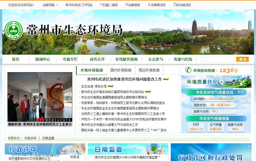 常州市生態(tài)環(huán)境局主要職責(zé):(一)落實(shí)執(zhí)行生態(tài)環(huán)境基本制度。貫徹落實(shí)國家、省生態(tài)環(huán)境的方針政策和法律法規(guī)。會同有關(guān)部門擬訂全市生態(tài)環(huán)境政策、規(guī)劃并組織實(shí)施,起草生態(tài)環(huán)境地方性法規(guī)和規(guī)章草案。會同有關(guān)部門編制并監(jiān)督實(shí)施重點(diǎn)區(qū)域、流域、飲用水水源地生態(tài)環(huán)境規(guī)劃和水功能區(qū)劃,組織實(shí)施各類生態(tài)環(huán)境標(biāo)準(zhǔn)、基準(zhǔn)和技術(shù)規(guī)范。(二)負(fù)責(zé)組織指導(dǎo)、協(xié)調(diào)全市生態(tài)文明建設(shè)工作,組織編制生態(tài)文明建設(shè)規(guī)劃,開展生態(tài)文明建設(shè)考核和評價(jià)。(三)負(fù)責(zé)重大生態(tài)環(huán)境問題的統(tǒng)籌協(xié)調(diào)和監(jiān)督管理。牽頭協(xié)調(diào)全市范圍內(nèi)重特大環(huán)境污染事故和生態(tài)破壞事件的調(diào)查處理,指導(dǎo)協(xié)調(diào)轄市(區(qū))政府重特大突發(fā)生態(tài)環(huán)境事件的應(yīng)急處置、預(yù)警工作,牽頭指導(dǎo)實(shí)施生態(tài)環(huán)境損害賠償制度,協(xié)調(diào)解決有關(guān)跨區(qū)域環(huán)境污染糾紛,統(tǒng)籌協(xié)調(diào)全市重點(diǎn)區(qū)域、流域生態(tài)環(huán)境保護(hù)工作。(四)負(fù)責(zé)落實(shí)減排目標(biāo)任務(wù)。組織實(shí)施地方污染物排放總量控制、排污許可證制度并監(jiān)督管理,確定大氣、水等納污能力,提出實(shí)施總量控制的污染物名稱和控制指標(biāo),組織制定和實(shí)施污染物減排計(jì)劃,監(jiān)督檢查各轄市(區(qū))污染物減排任務(wù)完成情況,實(shí)施生態(tài)環(huán)境保護(hù)目標(biāo)責(zé)任制。(五)負(fù)責(zé)提出生態(tài)環(huán)境領(lǐng)域固定資產(chǎn)投資規(guī)模和方向、市財(cái)政性資金安排意見。按規(guī)定權(quán)限,審批、核準(zhǔn)全市規(guī)劃內(nèi)和年度計(jì)劃規(guī)模內(nèi)固定資產(chǎn)投資項(xiàng)目,配合有關(guān)部門做好組織實(shí)施和監(jiān)督工作。參與指導(dǎo)和推動(dòng)循環(huán)經(jīng)濟(jì)和生態(tài)環(huán)保產(chǎn)業(yè)發(fā)展。(六)負(fù)責(zé)環(huán)境污染防治的監(jiān)督管理。貫徹執(zhí)行國家、省關(guān)于大氣、水、土壤、噪聲、光、惡臭、固體廢物、化學(xué)品、機(jī)動(dòng)車等污染防治管理制度。指導(dǎo)協(xié)調(diào)和監(jiān)督農(nóng)村生態(tài)環(huán)境保護(hù),會同有關(guān)部門監(jiān)督管理飲用水水源地生態(tài)環(huán)境保護(hù)工作,組織指導(dǎo)城鄉(xiāng)環(huán)境綜合整治工作,監(jiān)督指導(dǎo)農(nóng)業(yè)面源污染治理工作。監(jiān)督指導(dǎo)區(qū)域大氣環(huán)境保護(hù)工作,組織實(shí)施區(qū)域大氣污染聯(lián)防聯(lián)控協(xié)作機(jī)制。(七)貫徹落實(shí)省委、省政府和市委、市政府關(guān)于太湖水污染防治工作的各項(xiàng)政策和決策部署。協(xié)調(diào)解決太湖水污染防治工作的重大問題。擬訂并組織實(shí)施全市太湖水污染防治工作計(jì)劃,參與擬訂有關(guān)太湖水污染防治規(guī)劃。組織實(shí)施國家和省有關(guān)太湖流域水環(huán)境綜合治理方案。根據(jù)市政府授權(quán),對市各有關(guān)部門和各轄市(區(qū))人民政府實(shí)施太湖水環(huán)境保護(hù)和治理工作進(jìn)行監(jiān)督檢查。統(tǒng)籌協(xié)調(diào)和監(jiān)督全市水生態(tài)環(huán)境管理工作。(八)指導(dǎo)協(xié)調(diào)和監(jiān)督生態(tài)保護(hù)修復(fù)工作。擬訂生態(tài)保護(hù)規(guī)劃,監(jiān)督對生態(tài)環(huán)境有影響的自然資源開發(fā)利用活動(dòng)、重要生態(tài)環(huán)境建設(shè)和生態(tài)破壞恢復(fù)工作。組織實(shí)施各類自然保護(hù)地生態(tài)環(huán)境監(jiān)督管理工作。監(jiān)督野生動(dòng)植物保護(hù)、濕地生態(tài)環(huán)境保護(hù)等工作。監(jiān)督生物技術(shù)環(huán)境安全,牽頭生物物種(含生物遺傳資源)工作,組織協(xié)調(diào)生物多樣性保護(hù)工作,參與生態(tài)保護(hù)補(bǔ)償工作。(九)負(fù)責(zé)核與輻射安全的監(jiān)督管理。對核技術(shù)應(yīng)用、電磁輻射和伴有放射性礦產(chǎn)資源開發(fā)利用中的污染防治實(shí)施統(tǒng)一監(jiān)督管理,會同有關(guān)部門負(fù)責(zé)放射性物質(zhì)運(yùn)輸?shù)谋O(jiān)督管理,參與核事故應(yīng)急處理,負(fù)責(zé)輻射環(huán)境事故應(yīng)急處理工作,負(fù)責(zé)廢舊放射源和放射性廢物的管理,組織輻射環(huán)境監(jiān)測。配合上級生態(tài)環(huán)境部門對市內(nèi)核設(shè)施安全、核材料管制和民用核安全設(shè)備實(shí)施監(jiān)督管理。(十)負(fù)責(zé)生態(tài)環(huán)境準(zhǔn)入的監(jiān)督管理。按規(guī)定組織審查重大經(jīng)濟(jì)和技術(shù)政策、發(fā)展規(guī)劃以及重大經(jīng)濟(jì)開發(fā)計(jì)劃的環(huán)境影響評價(jià)文件,按規(guī)定權(quán)限審批或?qū)彶檩爡^(qū)內(nèi)開發(fā)建設(shè)區(qū)域、規(guī)劃、項(xiàng)目環(huán)境影響評價(jià)文件。組織實(shí)施生態(tài)環(huán)境準(zhǔn)入清單。(十一)負(fù)責(zé)生態(tài)環(
