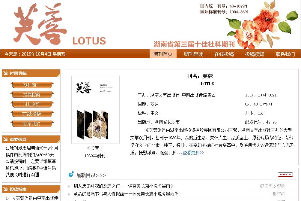| 網(wǎng)站標簽: | 湖南 芙蓉 文學雙月刊 | ||