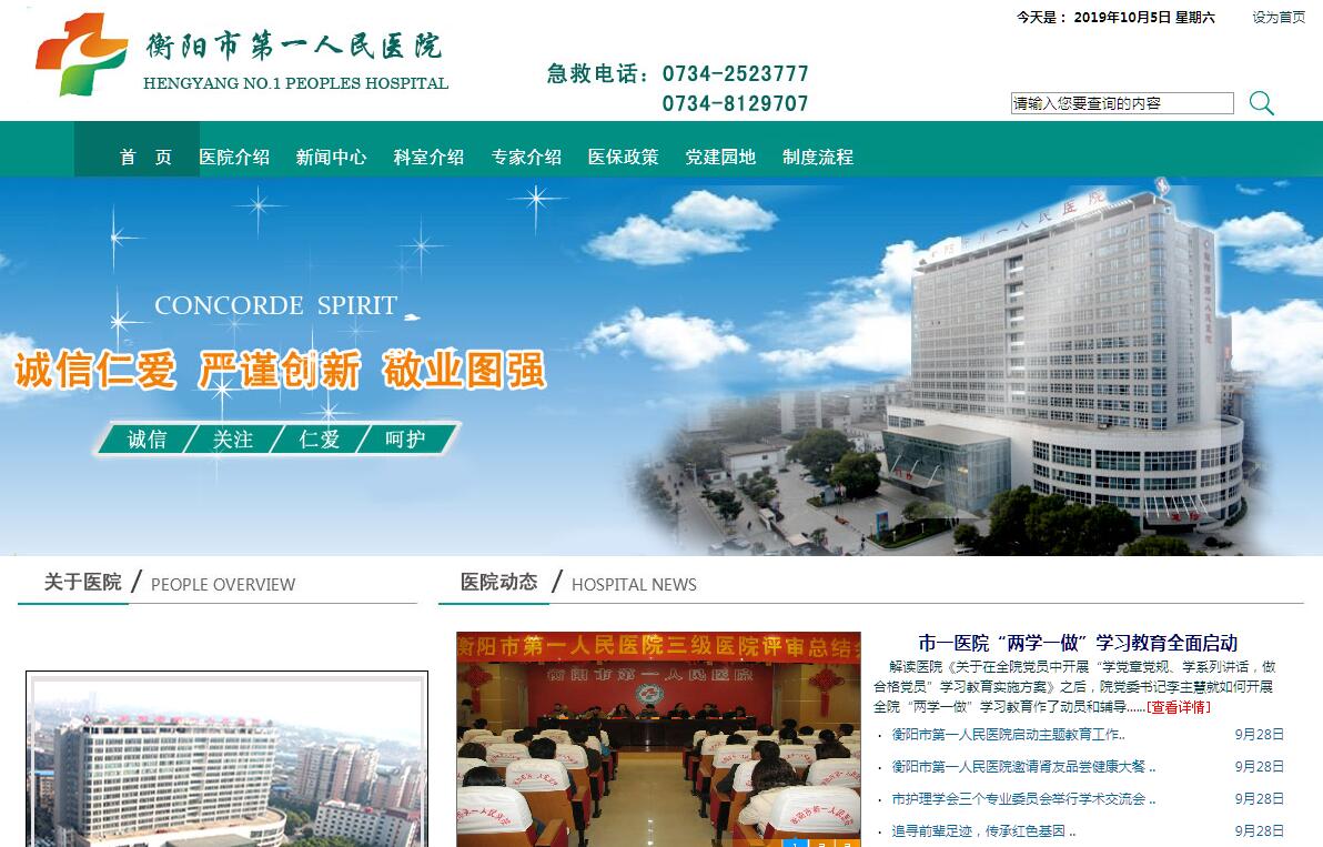 位于市珠暉區(qū)火車站附近的衡陽市第一人民醫(yī)院,是一所集醫(yī)療、保健、教學、科研于一體的市直三級綜合醫(yī)院,占地面積2.2萬余平方米。床位編制800張,開設臨床科室29個,醫(yī)技科室10個。其中骨科、腫瘤內科為市級重點建設???,心血管內科、泌尿外科、婦產科為醫(yī)院重點建設??啤at(yī)療服務輻射五個城區(qū)、七個縣(市)及周邊地區(qū),為各類醫(yī)保定點醫(yī)院,年門急診病人25萬余人次,年出院病人約2.2萬余人次。高級職稱人員158人,碩士研究生48人。神經內科、內分泌(老年病)科、呼吸內科、腎內(血透)科等科室為醫(yī)院特色???,腫瘤綜合治療、人工關節(jié)置換、心血管介入、先心病手術、腦膜瘤切除、經皮腎彈道碎石取石、經陰道子宮全切、Ⅱ期人工晶體植入、微創(chuàng)保膽取石等省市領先技術60余項。承辦專業(yè)機構:衡陽市醫(yī)學會老年病專業(yè)委員會、衡陽市整形美容專業(yè)委員會、衡陽市消毒供應質量控制中心、衡陽市醫(yī)院感染管理質量控制中心、全國流感哨點醫(yī)院。醫(yī)院診療環(huán)境:17層高、5.1萬余平方米的門急診住院綜合大樓功能齊全,布局合理,設有百級層流手術室、重癥監(jiān)護病房、血透病房、新生兒病房。醫(yī)療用房寬敞舒適,室內外環(huán)境優(yōu)美整潔,人性化特點突出。先進醫(yī)療設備:擁有CT、DR、心血管造影機、體外循環(huán)機、磁共振、直線加速器、高壓氧艙、電視腹腔鏡、宮腔鏡、四維彩超、血透(血濾)機、全自動生化免疫流水線、鈥激光等高新設備,設備總值1.2億元。醫(yī)院所獲榮譽:先后獲得衡陽市直衛(wèi)生系統(tǒng)目標管理先進單位、全市醫(yī)護技能操作大比武第一名、全市應急救護比賽第一名、衡陽市醫(yī)藥文化建設先進單位、衡陽市政風行風建設示范單位、湖南省道德文化建設先進單位、省級文明單位、全國醫(yī)藥衛(wèi)生系統(tǒng)創(chuàng)先爭優(yōu)活動先進集體、全國醫(yī)療援外先進集體、全國院感管理橫斷面調查先進單位等榮譽。