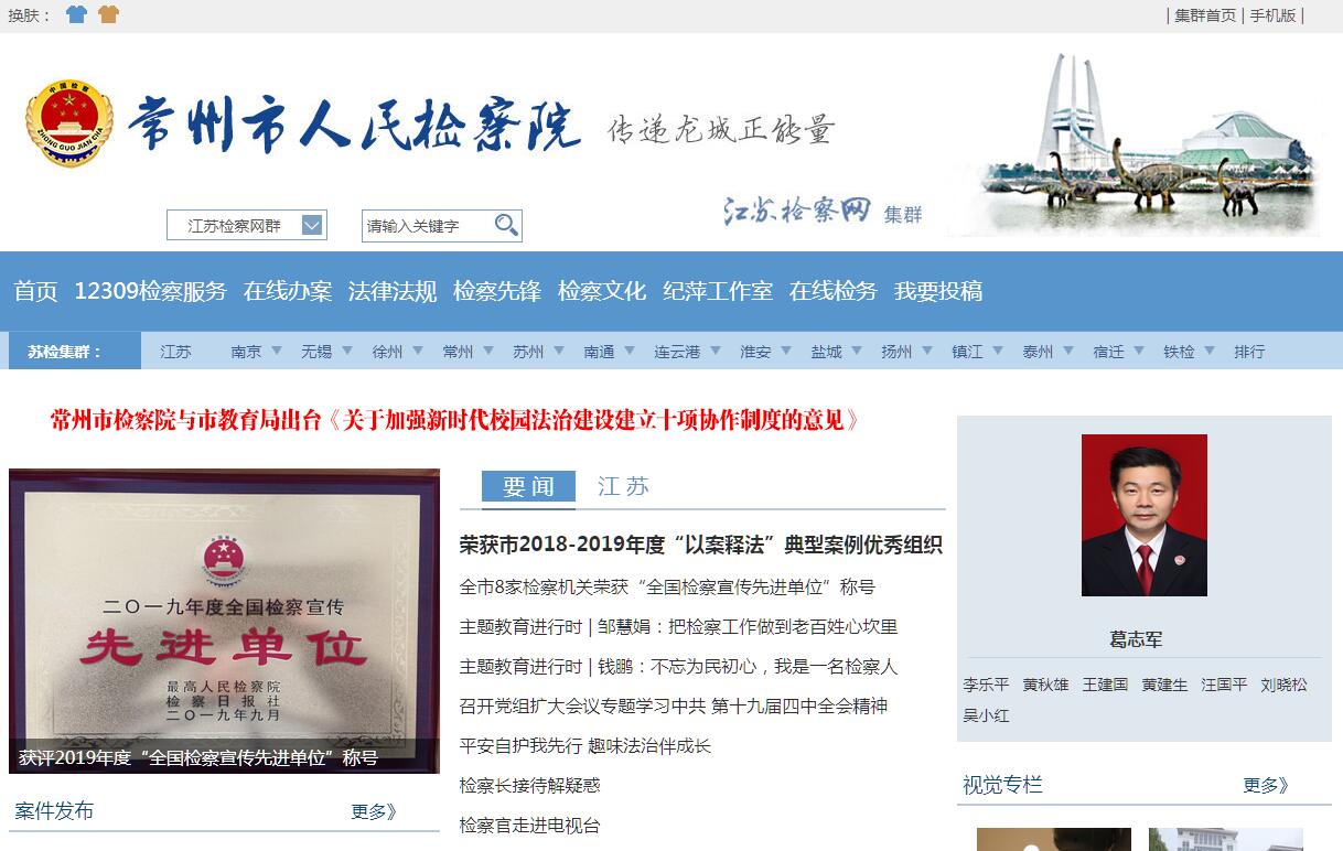 常州古稱蘭陵,別稱龍城,季子故里,人文薈萃,因物華天寶而素有“人邑名都、中吳要輔”之譽,既是一座有著2500多年悠久歷史的文化名城,也是充滿現(xiàn)代氣息、經(jīng)濟(jì)發(fā)達(dá)的新興工業(yè)城市。常州市人民檢察院恢復(fù)重建于1978年,下轄溧陽市、金壇區(qū)、武進(jìn)區(qū)、新北區(qū)、天寧區(qū)、鐘樓區(qū)、經(jīng)開區(qū)7個基層院和1個派出檢察院(天目湖地區(qū)人民檢察院),在主要鄉(xiāng)鎮(zhèn)設(shè)有科級建制鄉(xiāng)鎮(zhèn)檢察室11個,有5家基層院獲全國模范檢察院、全國先進(jìn)檢察院稱號。全市現(xiàn)有檢察干警566人,其中,員額檢察官228人,本科以上學(xué)歷達(dá)95.58%,碩士研究生以上學(xué)歷達(dá)26.68%。近年來,在市委和省檢察院的領(lǐng)導(dǎo)下,常州檢察機關(guān)以“民生檢察”作為特色工作,圍繞我市全面深化改革和現(xiàn)代化建設(shè)大局,積極投入平安常州、法治常州建設(shè),全面履行各項法律監(jiān)督職能,全面落實從嚴(yán)治檢要求,穩(wěn)步推進(jìn)檢察改革,打造民生檢察品牌,各項工作取得了長足進(jìn)步。在全國人大常委會授權(quán)后提起全國檢察機關(guān)首例民事公益訴訟案件,被最高檢確定為全國指導(dǎo)性案例,獲評2016年江蘇省“十大法治事件”,促成建立全省首家環(huán)境公益律師隊伍;根據(jù)上級院要求積極參與重大腐敗案件的辦理,圓滿完成了中國科學(xué)技術(shù)協(xié)會原黨組書記申維辰受賄、山西省政協(xié)原副主席令政策受賄、河北省原政法委書記張越受賄等案件的審查起訴和出庭公訴工作,受到中央政法委、省、市委和上級院一致好評;辦理了全省首例利用P2P網(wǎng)貸平臺非法吸收公眾存款案,為全省辦理此類案件提供了經(jīng)驗;打造了環(huán)境保護(hù)聯(lián)動執(zhí)法、檢察為民服務(wù)中心、“常檢云”信息平臺、預(yù)防職務(wù)犯罪警示教育基地、駐派出所檢察官聯(lián)絡(luò)員工作等一批特色品牌,涌現(xiàn)出以全國全省先進(jìn)基層檢察院、全國檢察機關(guān)科技強檢示范院、全國檢察文化建設(shè)示范院、“全國模范檢察官”吳小紅為代表的一批先進(jìn)集體和個人。