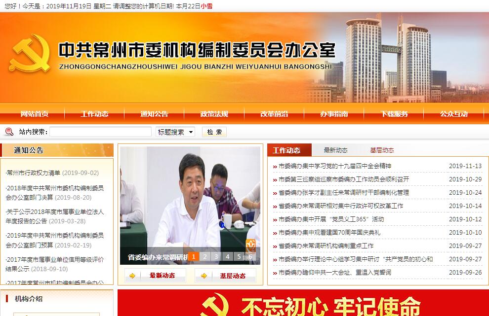 常州市機構編制委員會辦公室主要職責是:(一)貫徹黨和國家以及省委、省政府關于行政管理體制與機構改革及機構編制管理工作的方針、政策、法規(guī);加強調(diào)查研究,擬訂全市機構改革和機構編制管理的政策規(guī)定。(二)研究擬訂行政管理體制與機構改革總體方案,審核市級黨政機關、人大機關、政協(xié)機關、法院機關、檢察院機關、民主黨派機關、群團機關(以下簡稱市級黨政群機關)和各轄市、區(qū)的黨政機構改革方案,指導、協(xié)調(diào)全市各級行政管理體制與機構改革以及機構編制管理工作。(三)協(xié)調(diào)市委、市政府各部門的主要職責及其調(diào)整;協(xié)調(diào)市委、市政府各部門之間以及各部門與各轄市、區(qū)之間的職責分工。(四)審核并按權限批準市級黨政群機關的機構設置、人員編制和領導職數(shù);受省編辦委托,協(xié)助管理國家和省有關部門設在我市的機關和事業(yè)單位的機構編制工作。(五)擬訂事業(yè)單位機構改革總體方案;審核并按權限批準事業(yè)單位的機構設置、職責任務、編制員額和結(jié)構、領導職數(shù)、經(jīng)費渠道等事項;指導、協(xié)調(diào)全市各級事業(yè)單位機構改革和機構編制管理工作。(六)管理全市各級行政編制總額、事業(yè)編制總量和結(jié)構,擬訂并組織實施行政編制分配方案;審核各轄市、區(qū)直屬事業(yè)單位及副科級以上機構的設置和調(diào)整。(七)貫徹事業(yè)單位登記管理法規(guī)、規(guī)定,依法對事業(yè)單位進行登記和監(jiān)督管理;指導全市各級事業(yè)單位登記管理工作。(八)依法在劃定的代碼區(qū)段內(nèi)辦理機關、事業(yè)單位組織機構代碼的賦予、變更、注銷。根據(jù)法規(guī)和市委、市政府的規(guī)定,承擔機關、事業(yè)單位印章的制發(fā)、收繳工作。(九)監(jiān)督檢查全市各級行政管理體制與機構改革、機構編制管理政策規(guī)定的貫徹落實情況,評估機構編制執(zhí)行情況;參與“三責聯(lián)審”,負責機構編制責任審核工作;會同有關部門查處違反機構編制工作紀律的行為,維護機構編制紀律。(十)綜合協(xié)調(diào)和監(jiān)督檢查機構編制實名制管理工作,負責審核納入市級財政統(tǒng)一發(fā)放工資范圍的單位、人員編制狀況。(十一)承擔市委、市政府和市機構編制委員會交辦的其他事項。