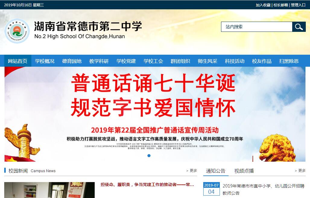 常德市第二中學(xué)始建于公元1888年,其前身為享譽三湘的德山書院,百余年來,這里書香濃郁、學(xué)脈綿延,培養(yǎng)了數(shù)以萬計的各類人才,走出了中國近代民主革命家、武昌起義的主要領(lǐng)導(dǎo)者劉復(fù)基,抗戰(zhàn)詩人陳輝,開國將軍潘振武等一批匡世濟時、救國救民的英才。1955年學(xué)校正式命名為“常德市第二中學(xué)”, 2004年7月晉升為“湖南省重點中學(xué)”,同年9月更名為“湖南省示范性普通高級中學(xué)”。學(xué)校地處善德文化的發(fā)祥地——德山,校園面積101041.30平方米,建筑面積86392.09平方米,院內(nèi)古木參天、流水潺潺、環(huán)境幽美,是莘莘學(xué)子理想的求學(xué)之地。 學(xué)校恪守“為時養(yǎng)器”校訓(xùn),繼承“愛國勤學(xué)”傳統(tǒng),大興學(xué)習(xí)之風(fēng)、研究之風(fēng)、學(xué)術(shù)之風(fēng),打造一支朝氣蓬勃、業(yè)務(wù)精湛、愛崗敬業(yè)的教職工隊伍, 學(xué)校現(xiàn)有教職工200余人,教學(xué)班42個,在校學(xué)生2196人。學(xué)校堅持“為社會發(fā)展與進步而辦學(xué),為擔(dān)當(dāng)時代大任而成才”的辦學(xué)理念,注重校園文化建設(shè),力推學(xué)生社會責(zé)任感教育,規(guī)范管理、科學(xué)育人,教育教學(xué)質(zhì)量穩(wěn)步提高,高考升學(xué)率連年攀升,提升率一直位居全市前列,辦學(xué)經(jīng)驗多次被《中國教育報》、《人民教育》、《湖南教育》、《常德日報》等主流媒體報道推介。近幾年,學(xué)校先后被授予“中國少年科學(xué)院科普基地”、 全國青少年五好小公民“復(fù)興中華從我做起”主題教育活動示范學(xué)校、全國“家庭教育指導(dǎo)實驗基地”、“湖南省現(xiàn)代教育技術(shù)實驗學(xué)校”、“湖南省文明單位”、“湖南省園林式單位”、“湖南省綠色學(xué)校”、“湖南省師德建設(shè)先進集體”、 “湖南省優(yōu)秀示范家長學(xué)?!薄昂鲜∝瀼亍秾W(xué)校體育工作條例》優(yōu)秀學(xué)?!?、“湖南省青少年科技活動示范基地”、湖南省第二屆“三湘讀書月”活動“書香校園”、“常德市文明標(biāo)兵單位”,并連續(xù)多年被常德市教育局評定為“目標(biāo)管理考核先進單位”。