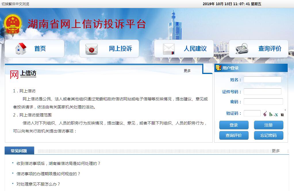 | 網(wǎng)站名稱: | 湖南省網(wǎng)上信訪投訴平臺 | ||