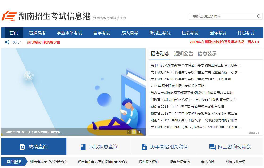 湖南招生考試信息港由湖南省教育考試院主辦。
