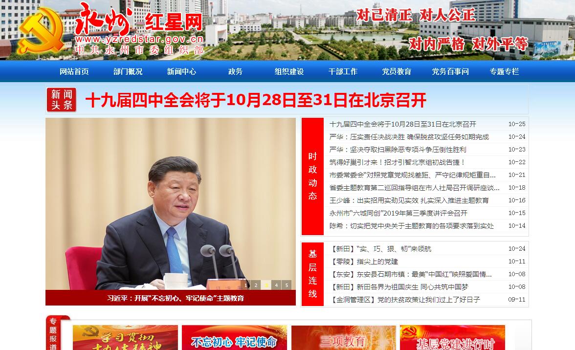 | 網(wǎng)站簡(jiǎn)介: 永州紅星網(wǎng)-永州黨建網(wǎng),永州市委組織部是市委主管組織工作和黨建工作的職能部門(mén),將秉承“對(duì)己清正,對(duì)人公正,對(duì)內(nèi)嚴(yán)格,對(duì)外平等”的優(yōu)良傳統(tǒng),著力打造模范部門(mén)和過(guò)硬隊(duì)伍,建設(shè)溫馨的黨員之家、干部之家、人才之家。 |