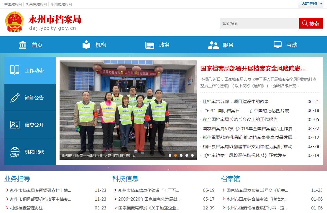 永州市檔案局主要職責(zé):一、對全市檔案事業(yè)實(shí)行統(tǒng)籌規(guī)劃、宏觀管理。按照黨和國家的政策、法規(guī),擬定全市檔案工作規(guī)范性文件以及全市檔案業(yè)務(wù)建設(shè)規(guī)范和技術(shù)標(biāo)準(zhǔn);制訂全市檔案事業(yè)發(fā)展的中長期規(guī)劃和年度計(jì)劃;依據(jù)《中華人民共和國檔案法》(以下簡稱《檔案法》),進(jìn)行行政執(zhí)法監(jiān)督;組織、指導(dǎo)、檢查、監(jiān)督、協(xié)調(diào)市直單位和各縣、區(qū)的檔案業(yè)務(wù)工作。二、集中統(tǒng)一管理市直單位的重要檔案和有關(guān)資料,依照檔案法規(guī)接收、征集、整理、保管市直單位的重要檔案和有關(guān)資料。保守黨和國家的機(jī)密,維護(hù)檔案完整,確保檔案資料的安全,推進(jìn)檔案工作的科學(xué)化管理和現(xiàn)代化建設(shè),并多層次、多途徑開發(fā)檔案信息資源,組織編研檔案史料出版和檔案史料展覽,定期向社會(huì)開放館藏檔案資料,向社會(huì)提供利用和進(jìn)行愛國主義教育;參與市直機(jī)關(guān)檔案室和專門檔案館銷毀檔案鑒定,承辦銷毀檔案清冊的審核備案工作。三、組織全市性的檔案宣傳活動(dòng),收集、整理和編發(fā)有關(guān)檔案內(nèi)刊資料;會(huì)同有關(guān)部門組織開展檔案工作外事活動(dòng)和對外交流。承辦市檔案學(xué)會(huì)日常工作。四、組織檔案科學(xué)技術(shù)與基礎(chǔ)理論研究;參與有關(guān)部門對檔案學(xué)科研成果進(jìn)行評審、認(rèn)定;制訂全市檔案工作人員隊(duì)伍建設(shè)規(guī)劃,組織檔案專業(yè)教育和檔案專業(yè)干部培訓(xùn)工作,會(huì)同有關(guān)部門承辦全市檔案專業(yè)技術(shù)職務(wù)評審的有關(guān)工作。五、對縣區(qū)檔案館網(wǎng)點(diǎn)建設(shè)布局進(jìn)行指導(dǎo);對市直部門新設(shè)檔案館進(jìn)行審核;協(xié)調(diào)指導(dǎo)各級各類檔案館的接收范圍;提出并呈報(bào)市本級檔案館向社會(huì)開放檔案的辦法和控制范圍,以及負(fù)責(zé)檔案及其復(fù)制件出境,向各級國家檔案館以外的任何單位和個(gè)人出賣、轉(zhuǎn)讓、贈(zèng)送的檔案,外國組織和個(gè)人利用國家檔案館檔案的審核工作。六、指導(dǎo)全市檔案信息資源開發(fā)利用和服務(wù)工作,推進(jìn)檔案信息網(wǎng)絡(luò)建設(shè)。七、承辦市委、市人民政府交辦的其他事項(xiàng)。