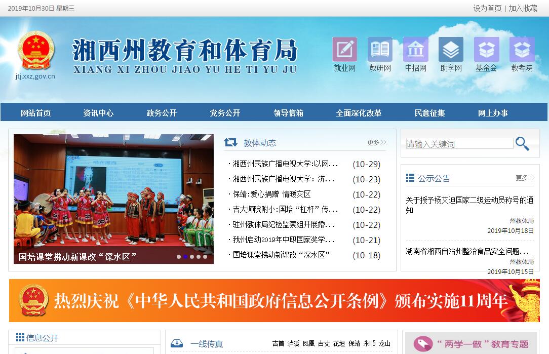 湘西州教育和體育局主要職責(zé):(一)貫徹落實國家教育體育工作方針、政策和法律、法規(guī)、制度。(二)研究提出全州教育體育改革與發(fā)展戰(zhàn)略和教育體育事業(yè)發(fā)展規(guī)劃,擬定教育體育體制改革的政策以及教育體育發(fā)展的重點、結(jié)構(gòu)、速度,指導(dǎo)并協(xié)調(diào)實施工作。(三)依法依規(guī)管理教育體育經(jīng)費,負(fù)責(zé)管理分配本級教育體育預(yù)算經(jīng)費和上級下?lián)艿馁Y金;參與擬訂籌措教育體育經(jīng)費、撥款、基建投資的政策法規(guī);監(jiān)測全州教育體育經(jīng)費的投入和使用情況;按有關(guān)規(guī)定管理國內(nèi)外政府及組織對全州的教育體育援助和貸款;指導(dǎo)并管理資助大中小學(xué)校經(jīng)濟(jì)困難學(xué)生工作。(四)依法依規(guī)主管全州教師、教練工作。依法履行中小學(xué)教師、教練的資格認(rèn)定、招聘錄用、職務(wù)評聘、培養(yǎng)培訓(xùn)、調(diào)配交流、檔案管理和考核獎懲等管理職能;監(jiān)督執(zhí)行國家制定的各級各類學(xué)校編制標(biāo)準(zhǔn);統(tǒng)籌規(guī)劃學(xué)校教師和校長隊伍建設(shè);負(fù)責(zé)優(yōu)秀運(yùn)動員退役安置工作;負(fù)責(zé)全州語言文字工作。(五)按有關(guān)規(guī)定負(fù)責(zé)全州高中階段教育各類學(xué)校的設(shè)置、更名、撤銷與調(diào)整的審核、報批工作;指導(dǎo)高等、中等及其以下各類教育的教育教學(xué)改革;組織實施普及九年義務(wù)教育、學(xué)前教育。(六)組織管理普通初中畢業(yè)學(xué)業(yè)考試;指導(dǎo)各級各類學(xué)校的思想政治教育工作、德育工作、體育衛(wèi)生與藝術(shù)教育及國防教育工作。(七)統(tǒng)籌管理各類高等、中等學(xué)歷教育的考試招生工作;負(fù)責(zé)中小學(xué)學(xué)籍和幼兒園園籍管理工作;指導(dǎo)高等、中等學(xué)校畢業(yè)生就業(yè)制度改革,負(fù)責(zé)畢業(yè)生就業(yè)指導(dǎo)服務(wù)。(八)統(tǒng)籌管理中小學(xué)、體育學(xué)校和幼兒園教材、配套用書、教輔資料和音響制品、圖書及現(xiàn)代化教育技術(shù)工作。(九)負(fù)責(zé)全州教育體育基本信息的統(tǒng)計、分析和發(fā)布工作。(十)貫徹落實全民健身條例,指導(dǎo)并開展群眾性體育活動,實施國家體育鍛煉標(biāo)準(zhǔn),開展國民體質(zhì)監(jiān)測;負(fù)責(zé)全州社會體育指導(dǎo)員等級的審核和核準(zhǔn)工作,指導(dǎo)公共體育設(shè)施的建設(shè),負(fù)責(zé)公共體育設(shè)施的監(jiān)督管理。(十一)統(tǒng)籌規(guī)劃全州青少年體育和競技體育發(fā)展,指導(dǎo)全州體育教育教學(xué)、業(yè)務(wù)訓(xùn)練和體育競賽工作,規(guī)劃全州體育訓(xùn)練項目的布局,指導(dǎo)各級各類業(yè)余體育學(xué)校和單項體育運(yùn)動學(xué)校的建設(shè)工作;指導(dǎo)各級各類學(xué)校體育教育教學(xué)、業(yè)余訓(xùn)練、體育競賽;負(fù)責(zé)全州運(yùn)動員的登記核準(zhǔn)和申報工作;協(xié)同有關(guān)部門制定優(yōu)秀運(yùn)動員獎勵的政策和標(biāo)準(zhǔn)。(十二)制定全州性體育競賽計劃,指導(dǎo)全州性體育競賽工作;負(fù)責(zé)全州裁判員的業(yè)務(wù)培訓(xùn)和等級申報、核準(zhǔn)工作;組織舉辦全州大型綜合性體育競賽,承辦或參加全國、全省綜合性運(yùn)動會單項體育競賽。(十三)負(fù)責(zé)體育彩票發(fā)行管理。(十四)貫徹國家有關(guān)涉外方針政策,開展國際間和與香港、澳門特別行政區(qū)及臺灣地區(qū)的教育體育結(jié)合與交流,組織參加和承辦國際體育競賽,承擔(dān)上級主管部門交給的外事任務(wù)。(十五)組織開展體育科研和反興奮劑工作。(十六)制定全州體育經(jīng)濟(jì)和經(jīng)營活動的有關(guān)辦法,發(fā)展體育市場;依法審查體育經(jīng)營活動從業(yè)資格。(十七)負(fù)責(zé)協(xié)調(diào)、指導(dǎo)、督促各級各類學(xué)校落實安全維穩(wěn)措施。(十八)承擔(dān)州人民政府教育督導(dǎo)實施工作;組織、指導(dǎo)全州體育督查工作。(十九)協(xié)助州委組織部考察和管理學(xué)校領(lǐng)導(dǎo)班子和領(lǐng)導(dǎo)干部。(十二)承辦州人民政府交辦的其他事項。